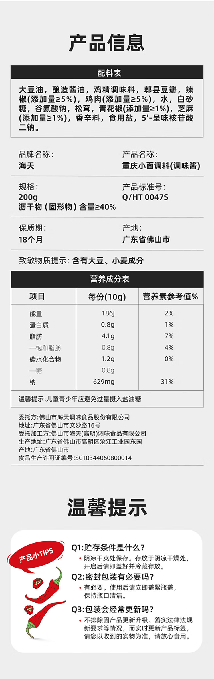 海天重庆小面调料200g 拌面酱拌饭酱 麻辣鲜香拌饭拌面调味酱