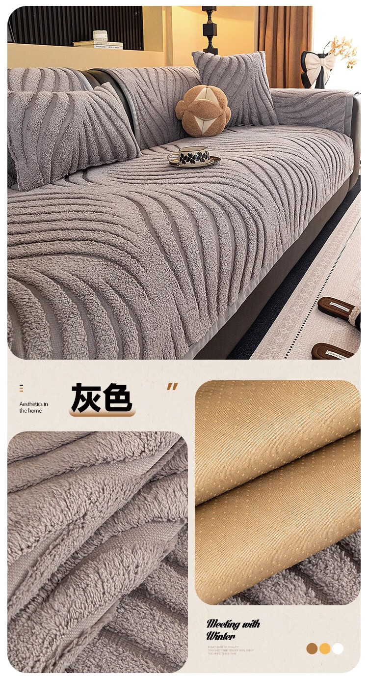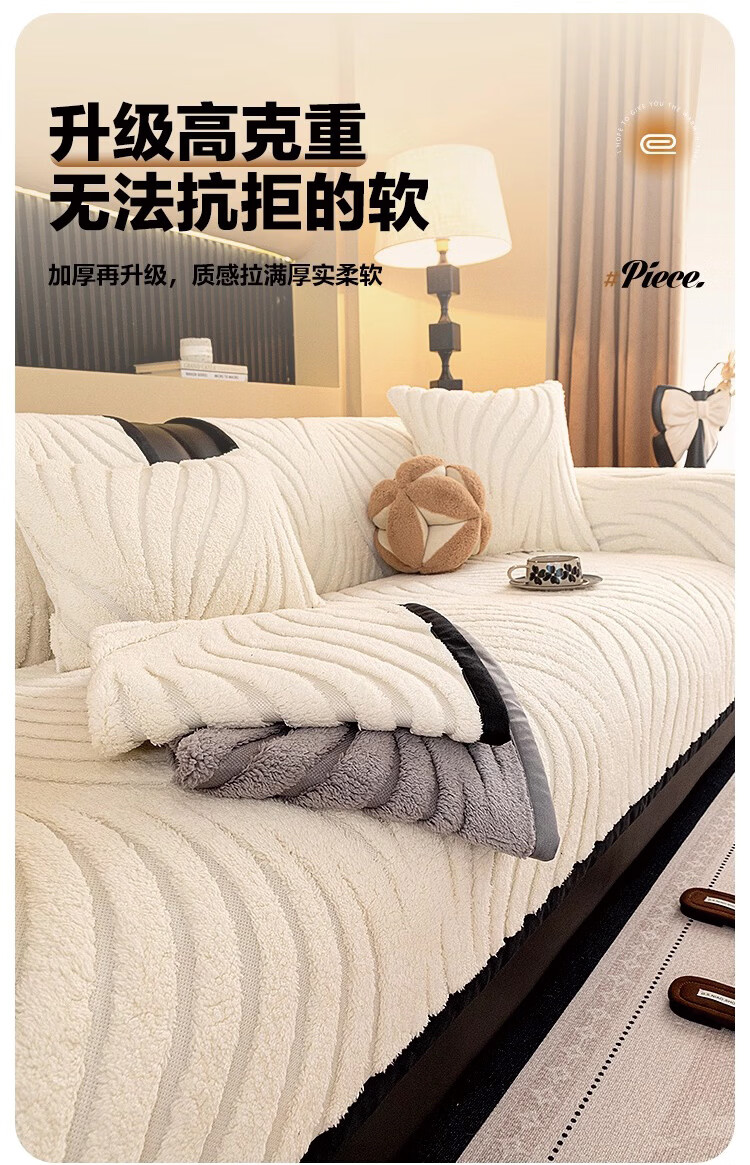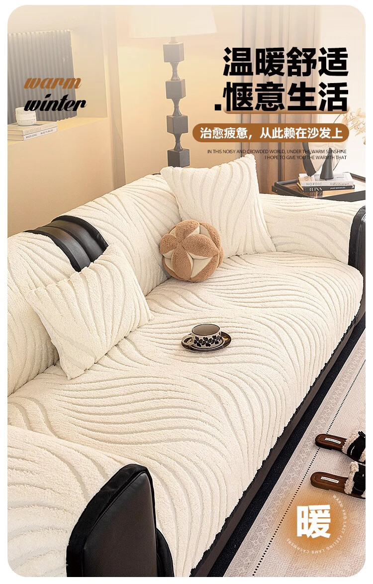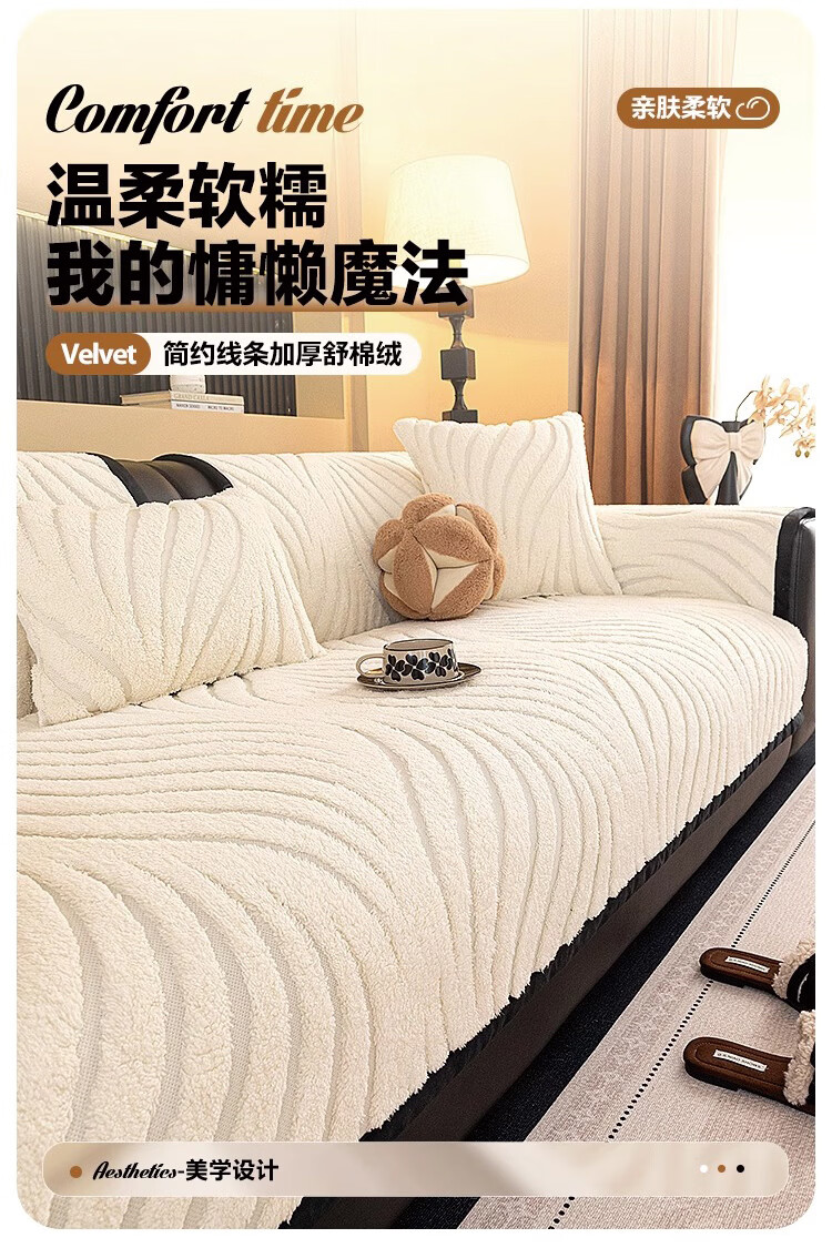 金拾美月2026新款舒棉绒冬季沙发垫加厚毛绒保暖防滑沙发套一片式盖布巾 直边冬临-米白色 70cm*70cm
