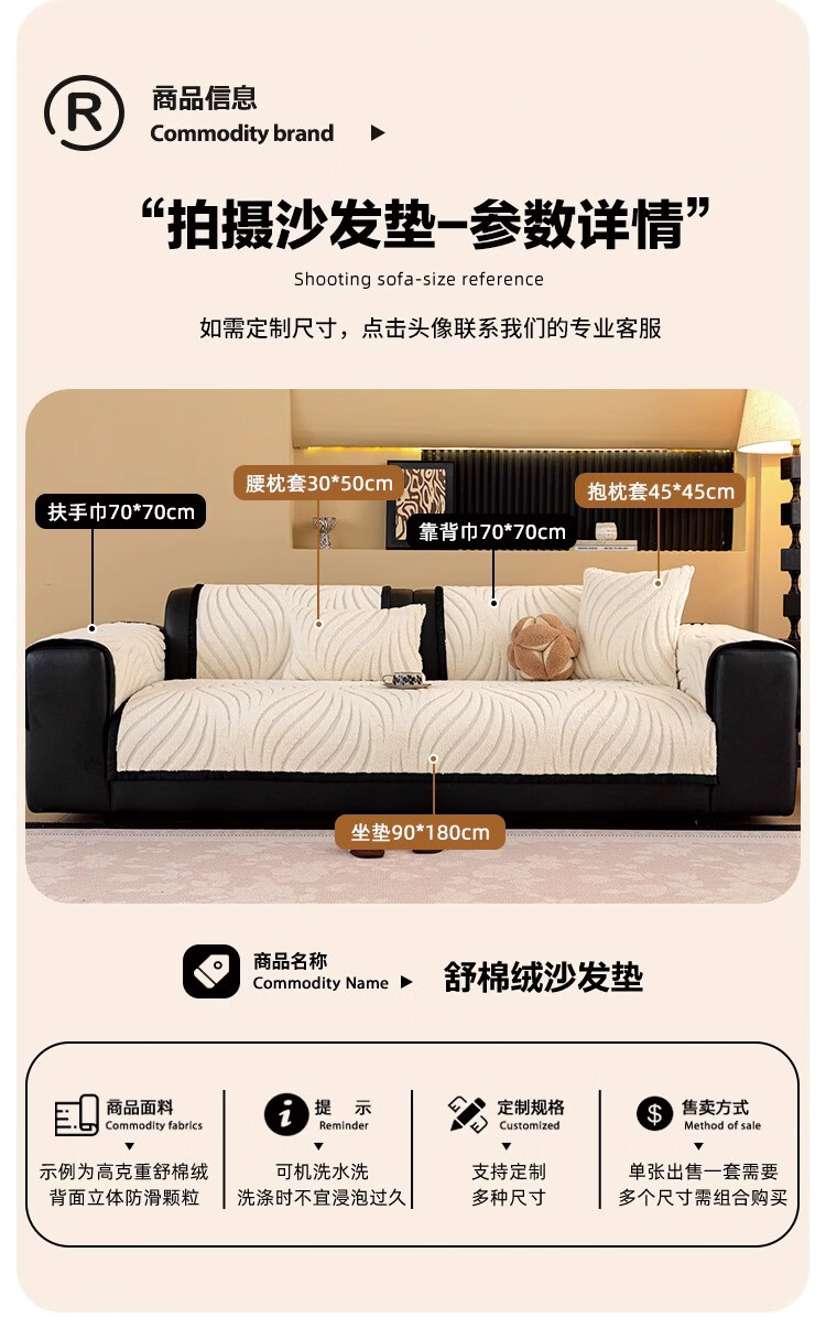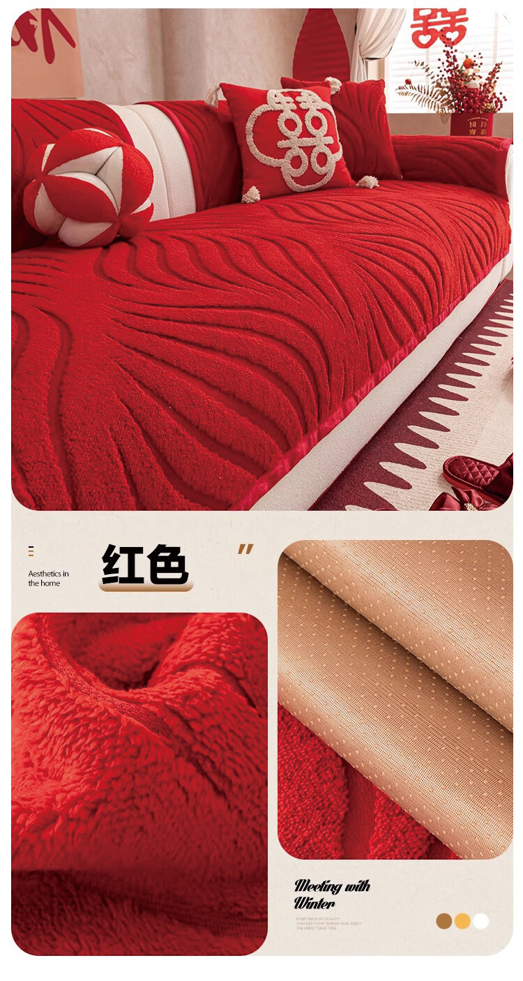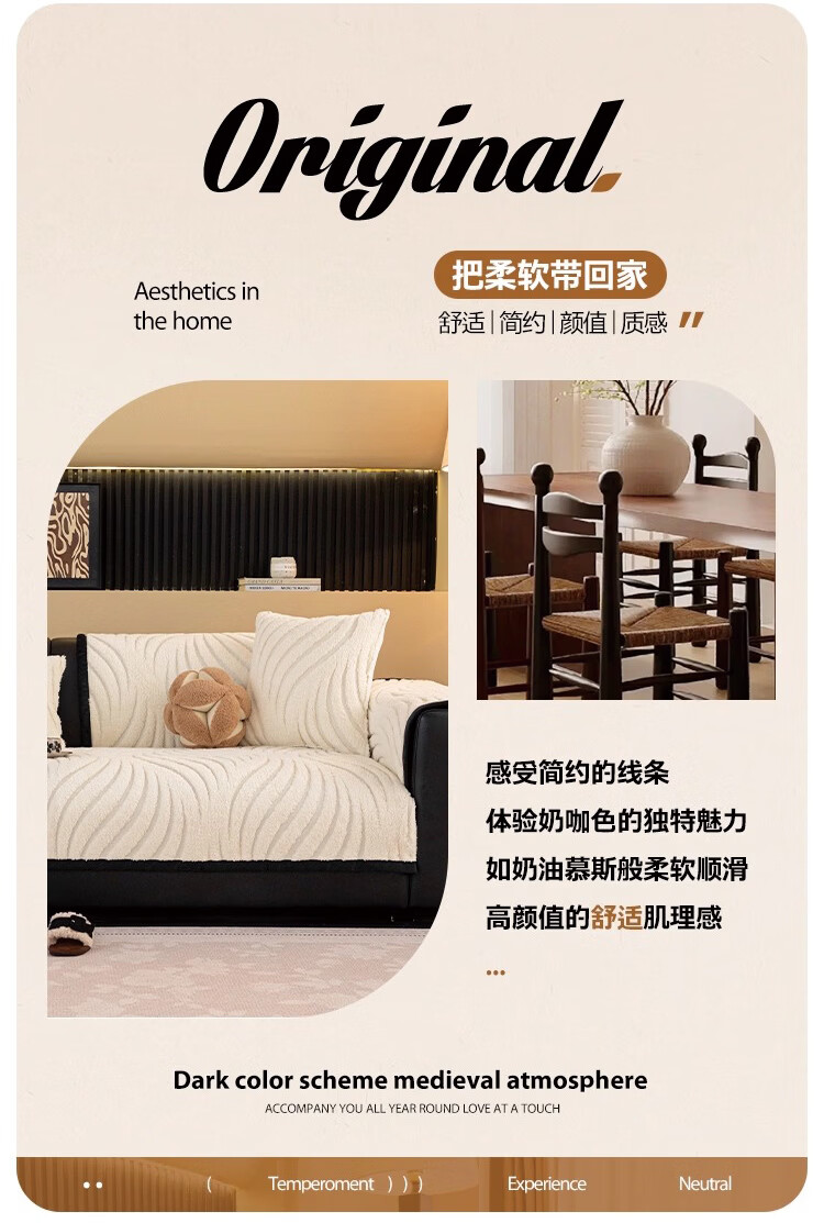 金拾美月2026新款舒棉绒冬季沙发垫加厚毛绒保暖防滑沙发套一片式盖布巾 直边冬临-米白色 70cm*70cm
