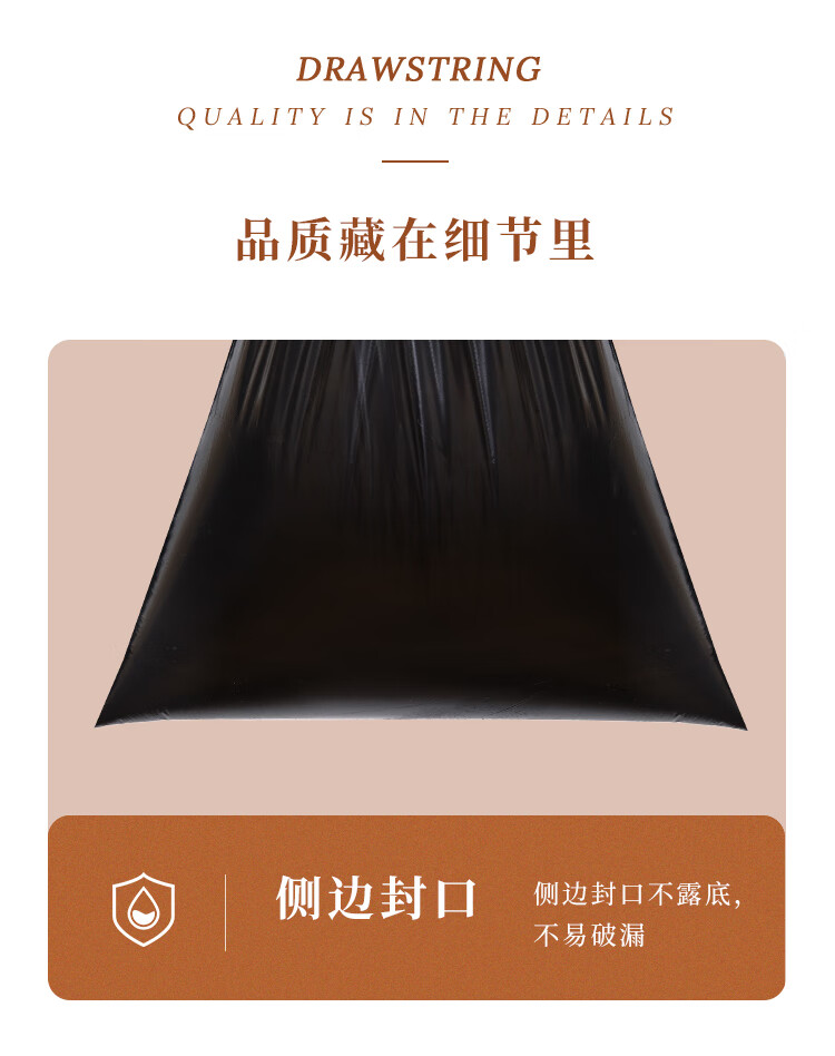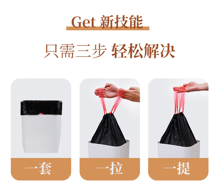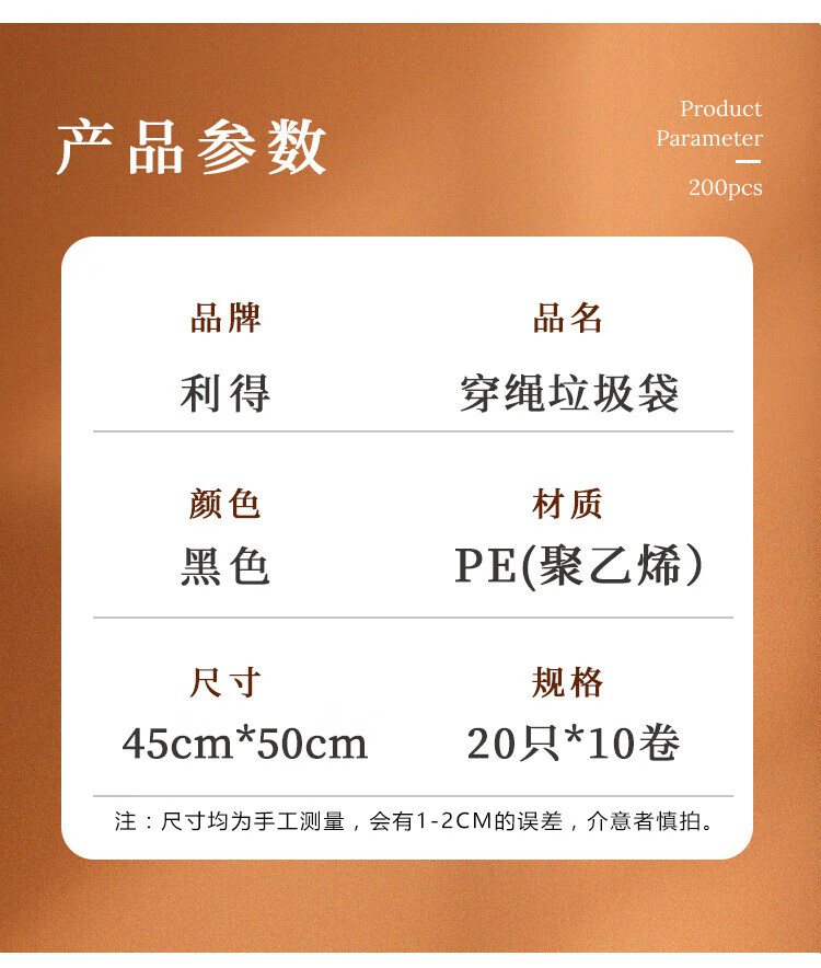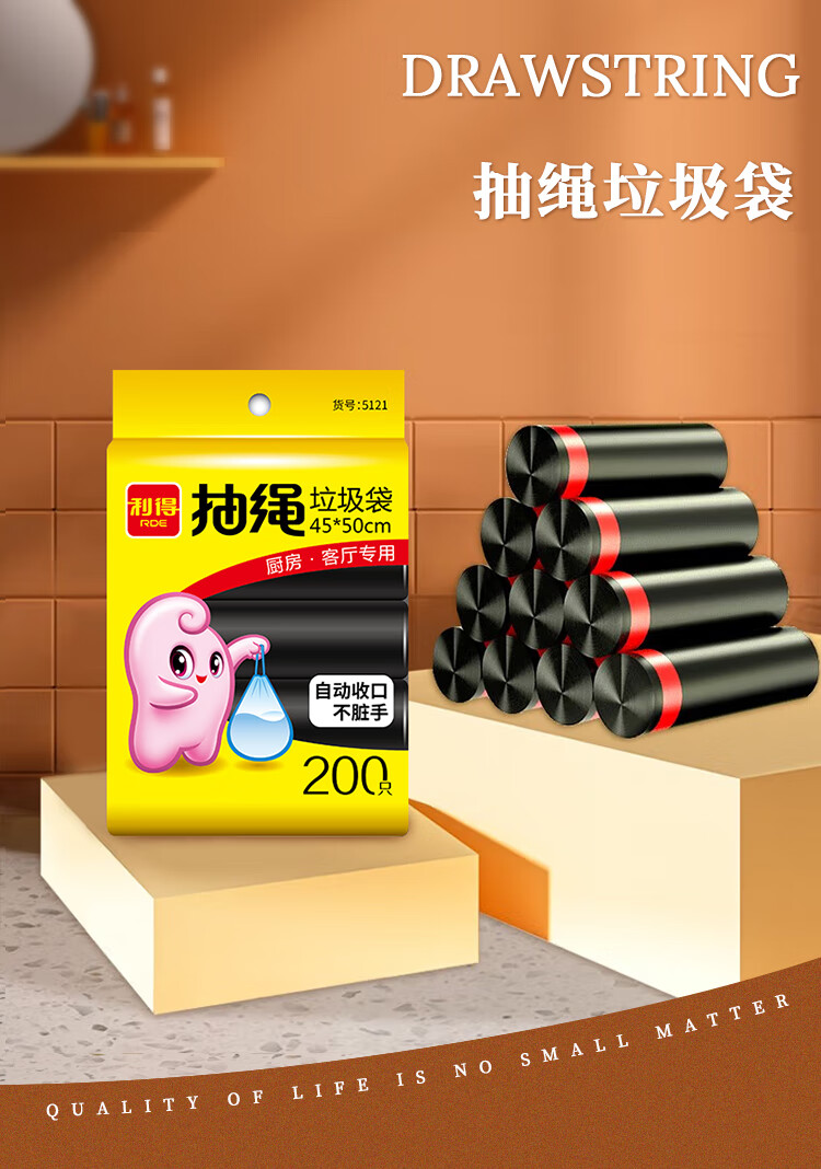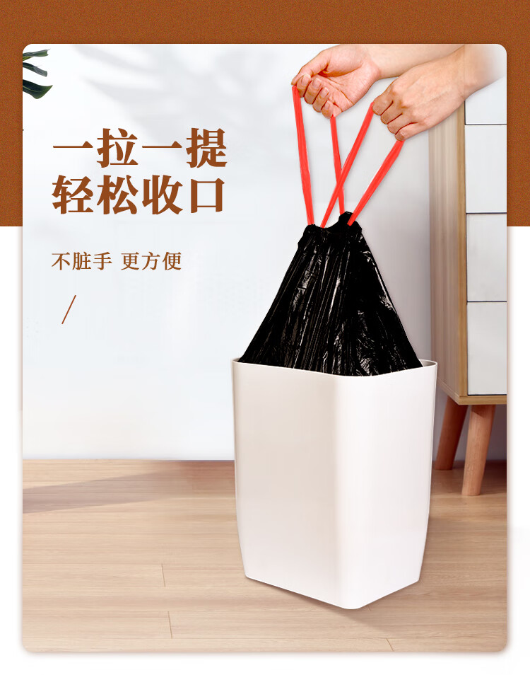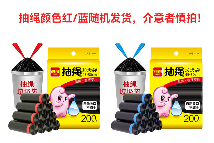 利得抽绳垃圾袋45cm*50cm*10卷200只装加厚垃圾袋厨房黑色