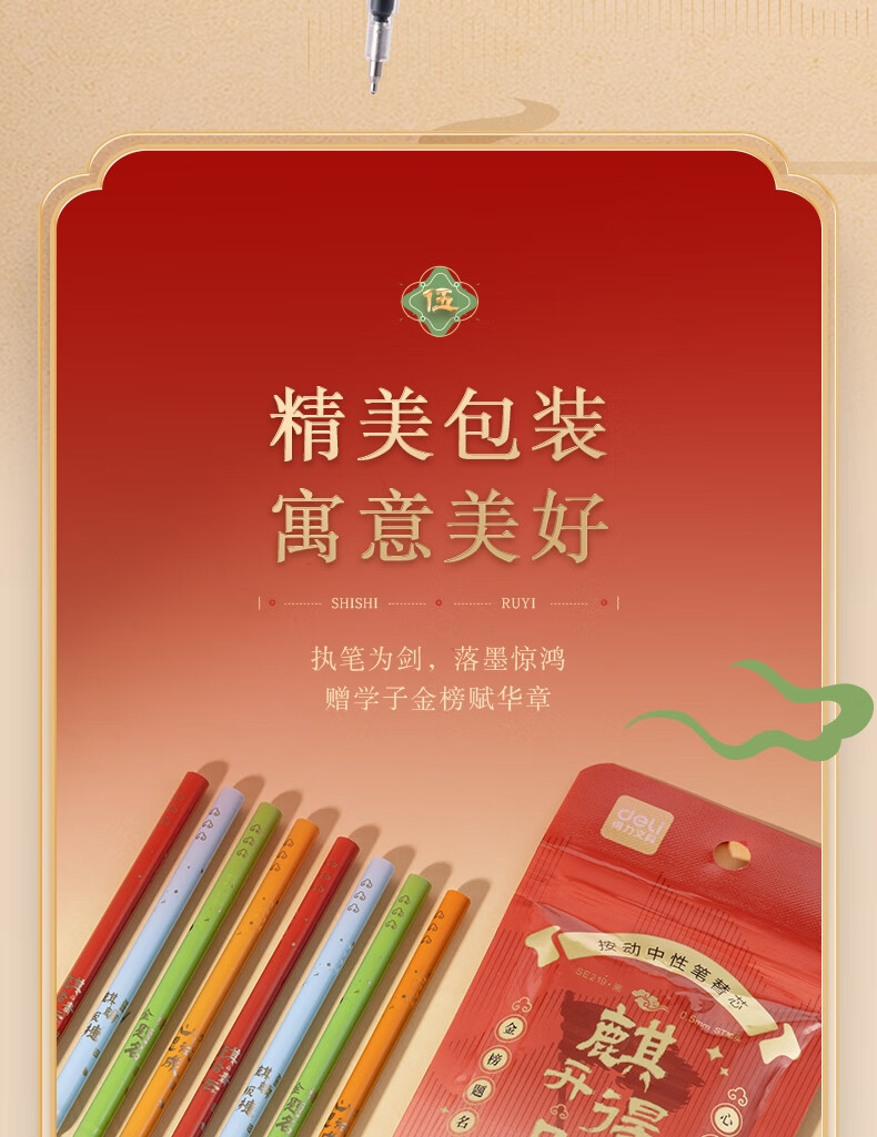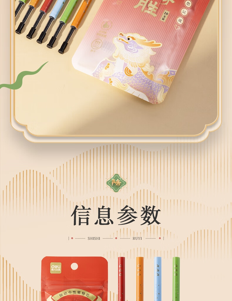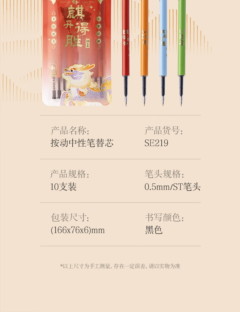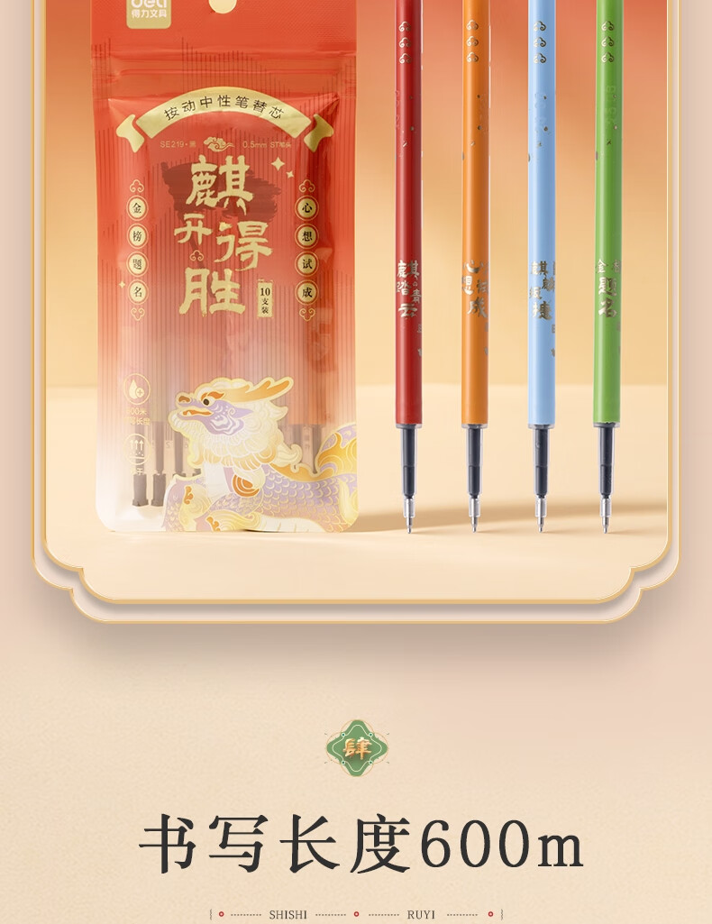 得力(deli)麒开得胜0.5mm秒干大墨量按动中性笔芯替芯 ST笔头学生刷题笔考试笔笔芯 黑色10支/袋SE219