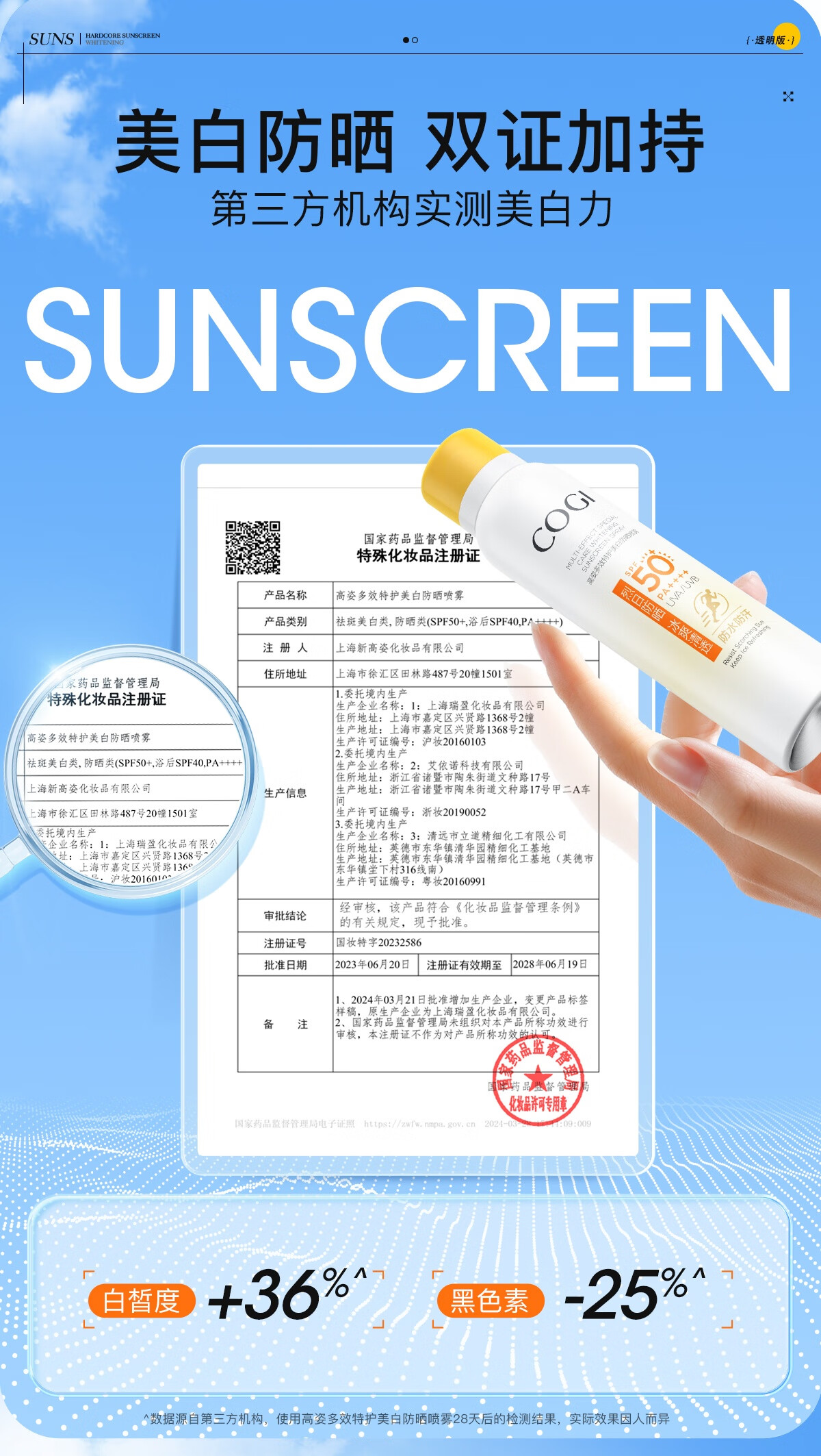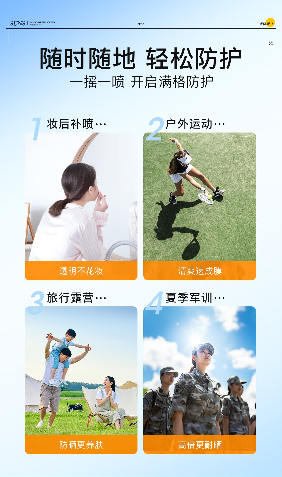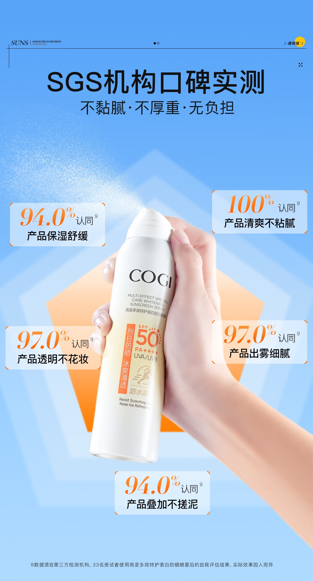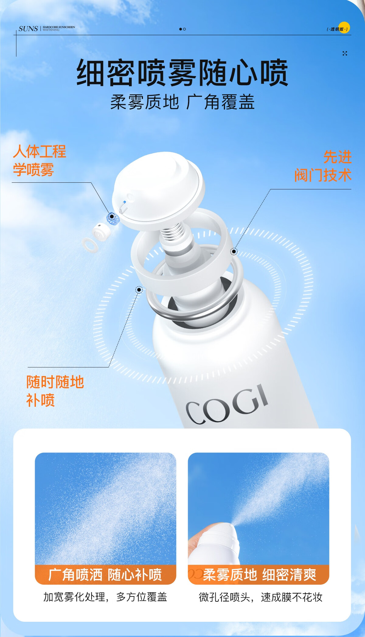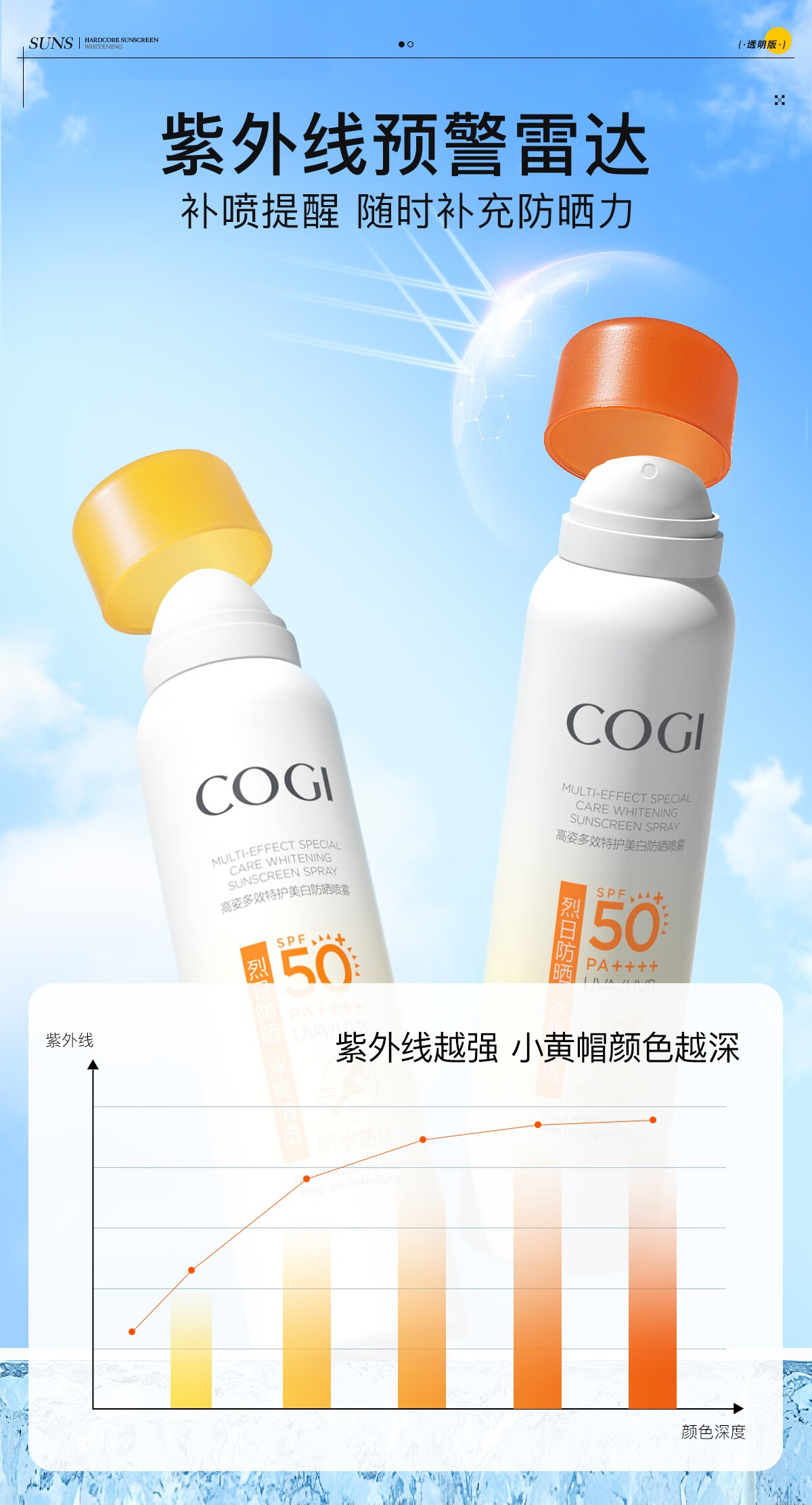 高姿透明防晒喷雾120mlSPF50+PA++++防水防汗美白防晒军训户外便携