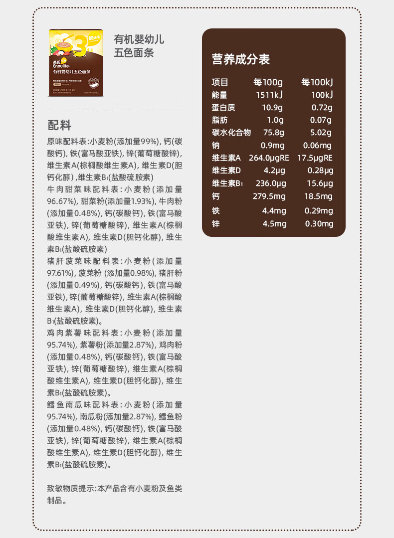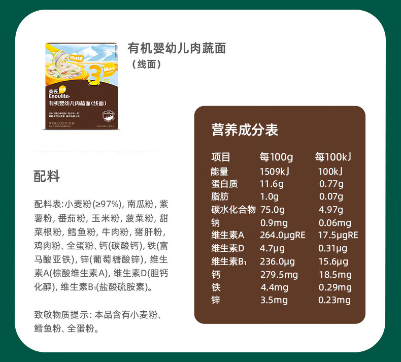 英氏有机婴幼儿面条200g 婴儿线面宝宝辅食长直面儿童早餐 真验厂