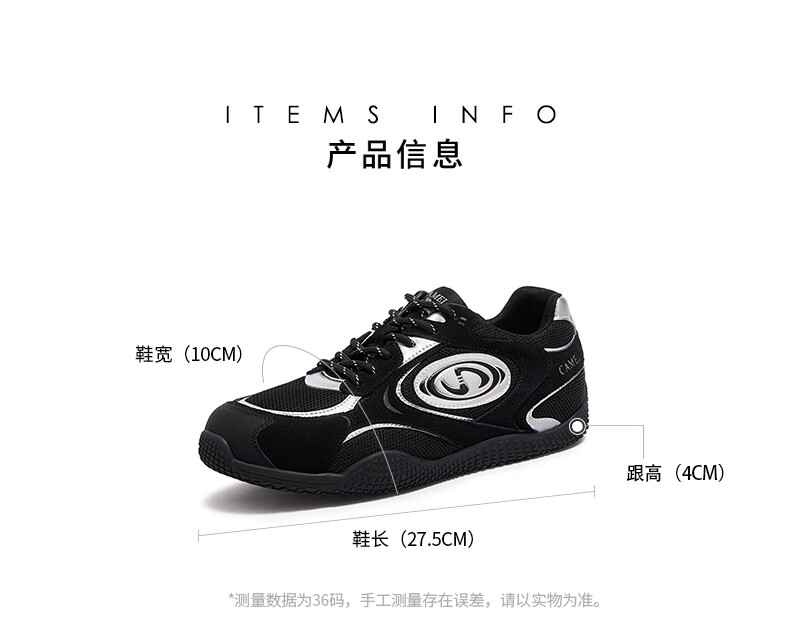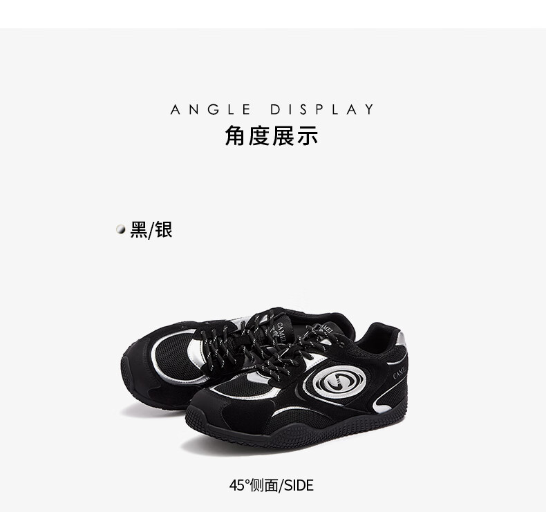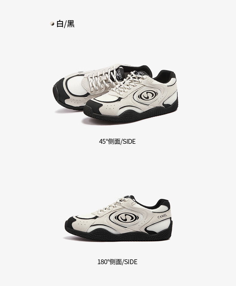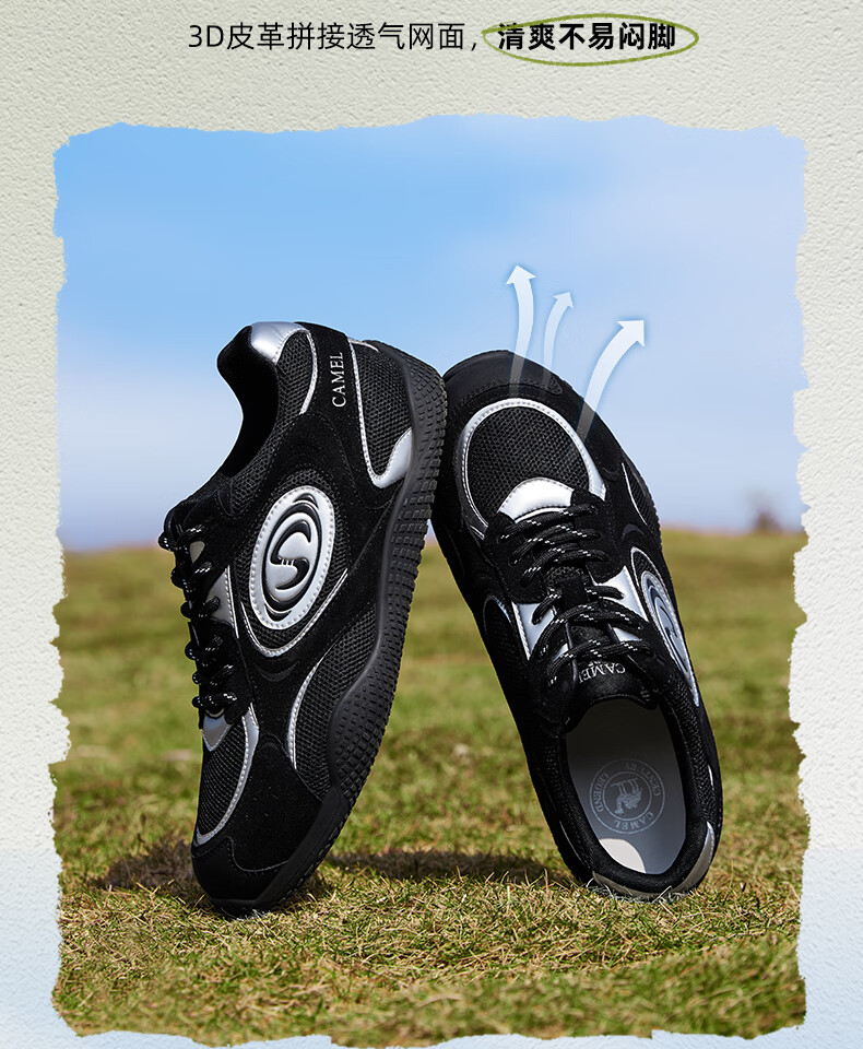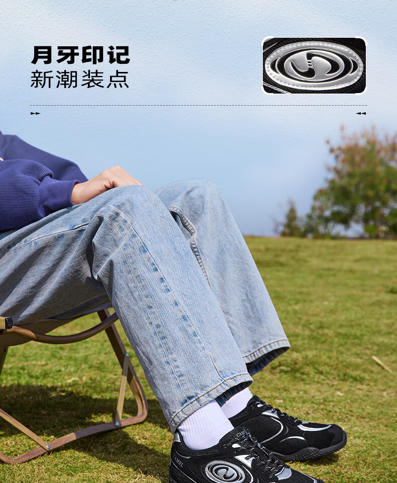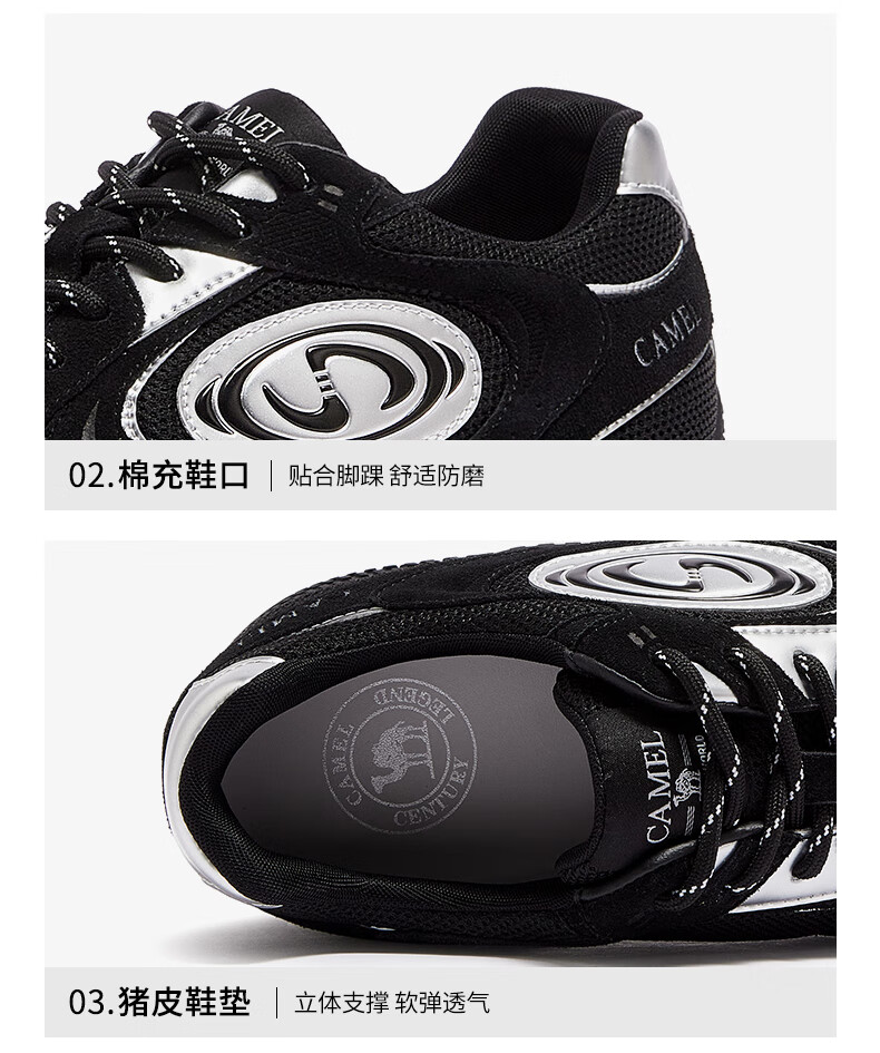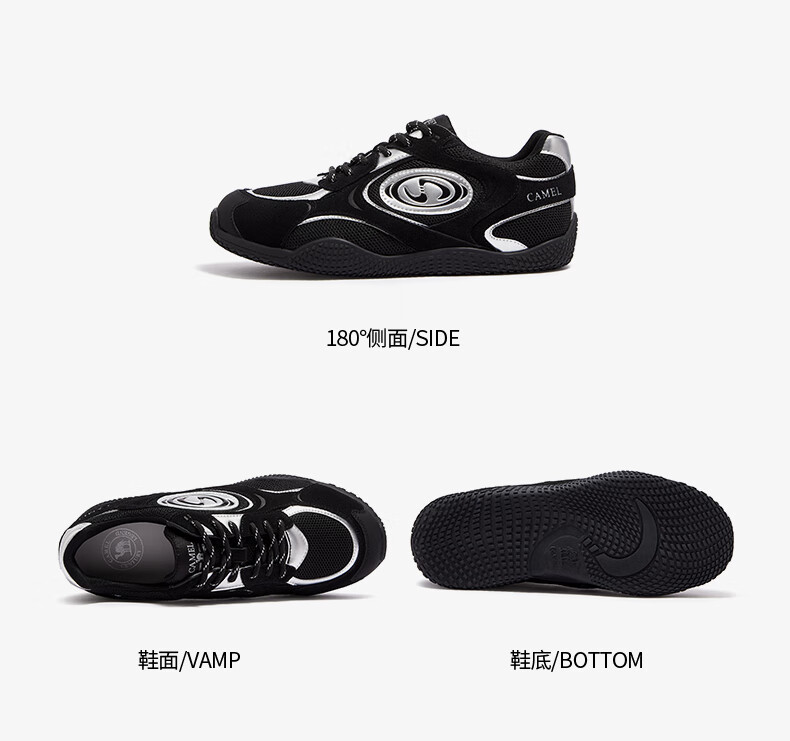 骆驼月牙德训鞋男运动百搭板鞋网面复古休闲鞋 L25S577059M 黑/银 43