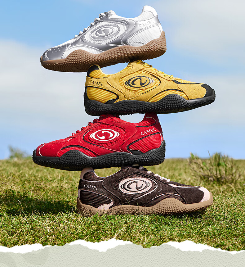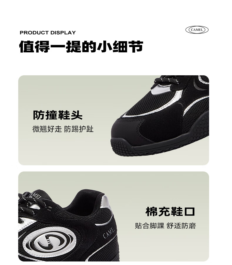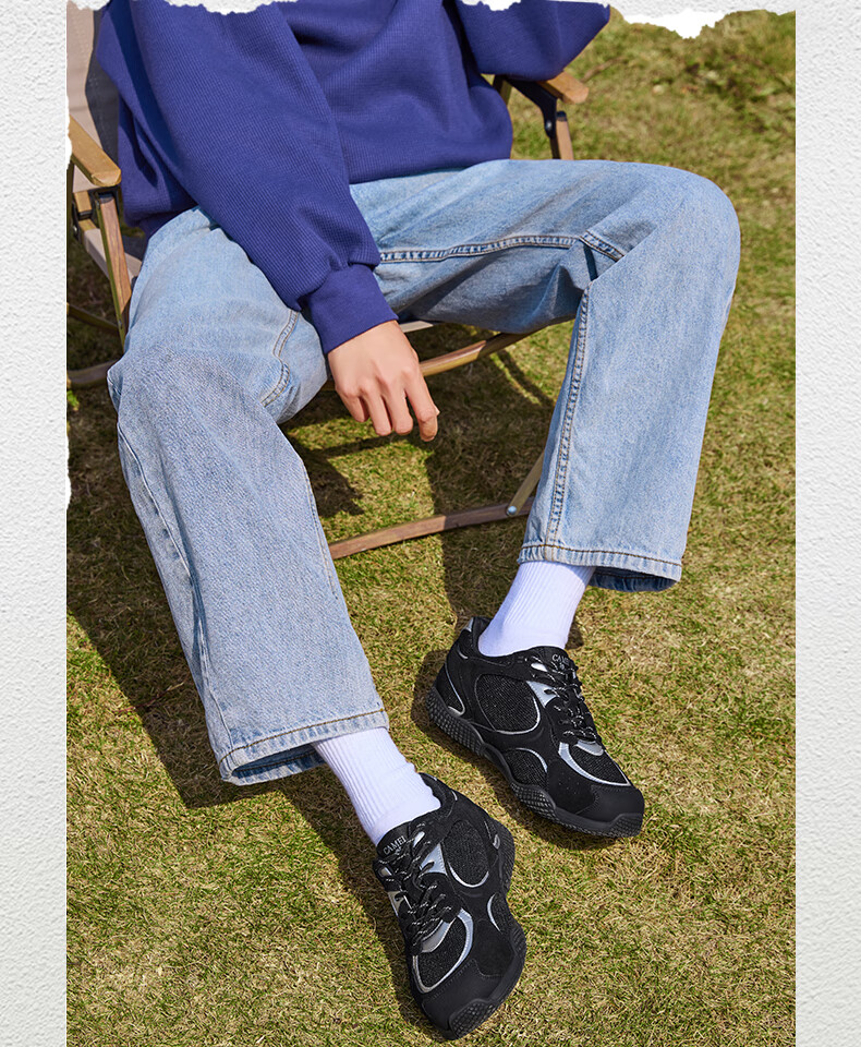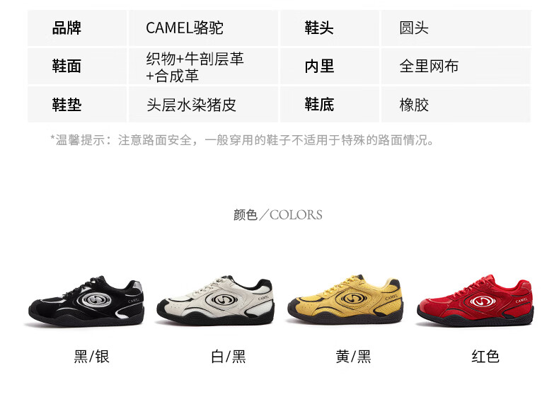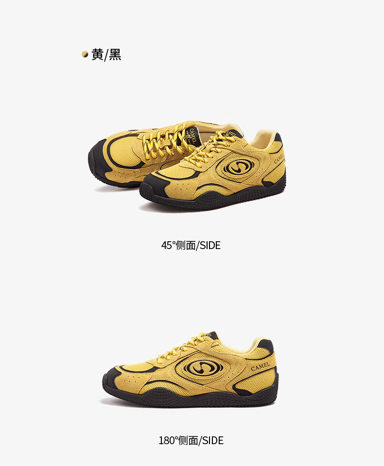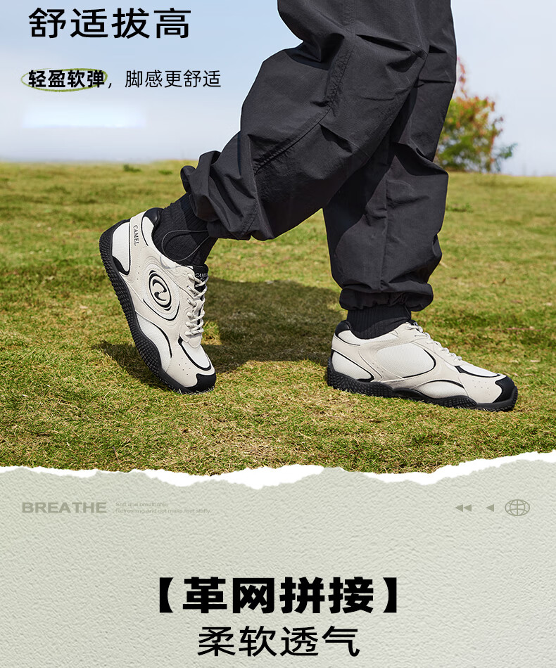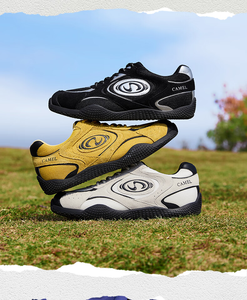 骆驼月牙德训鞋男运动百搭板鞋网面复古休闲鞋 L25S577059M 黑/银 43