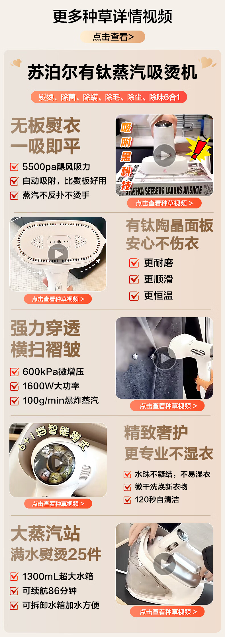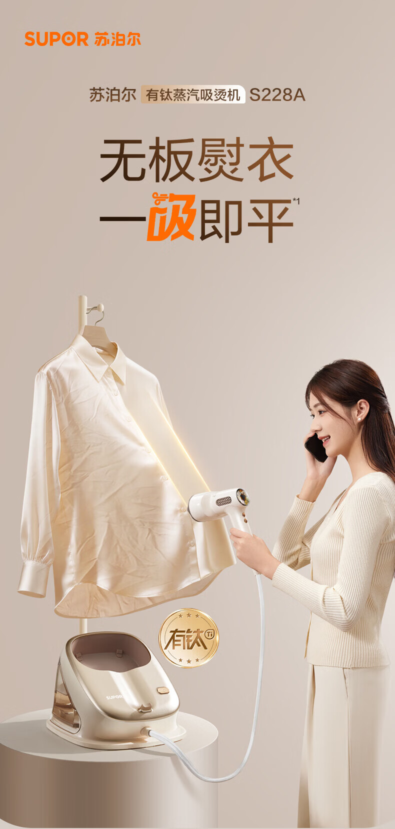 苏泊尔(SUPOR)【有钛蒸汽吸烫机】基站式吸熨烫机100g/min吸附台式挂烫机家用手持电熨斗烫衣机S228A品质礼物
