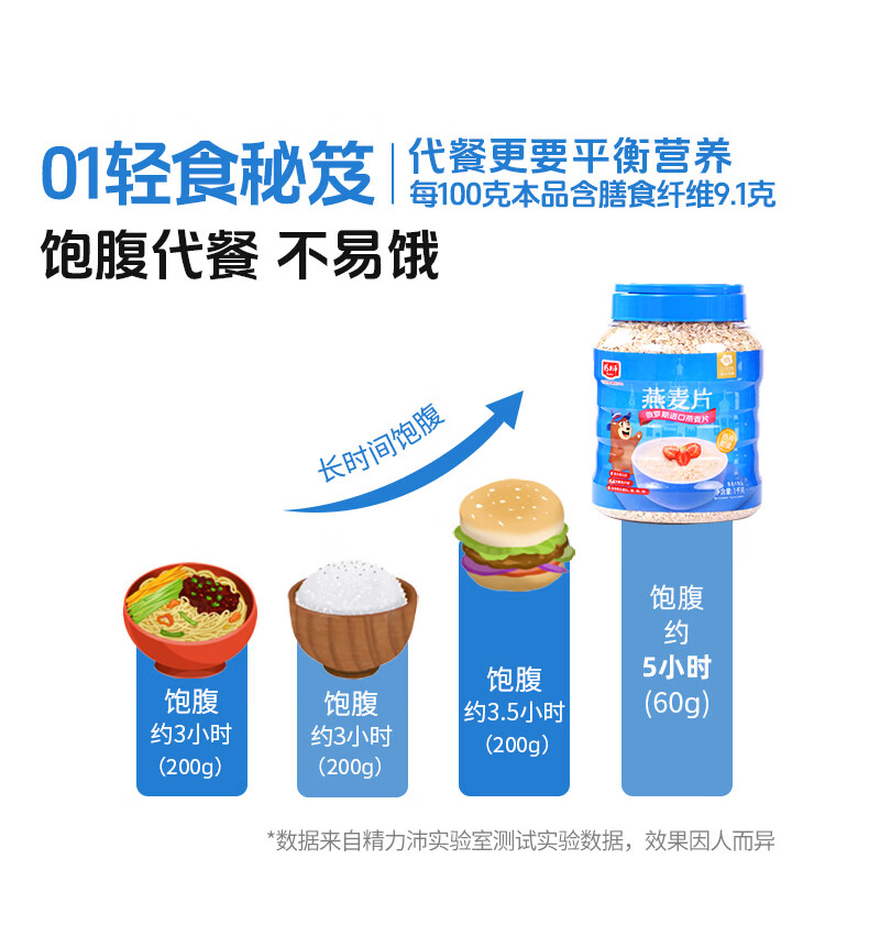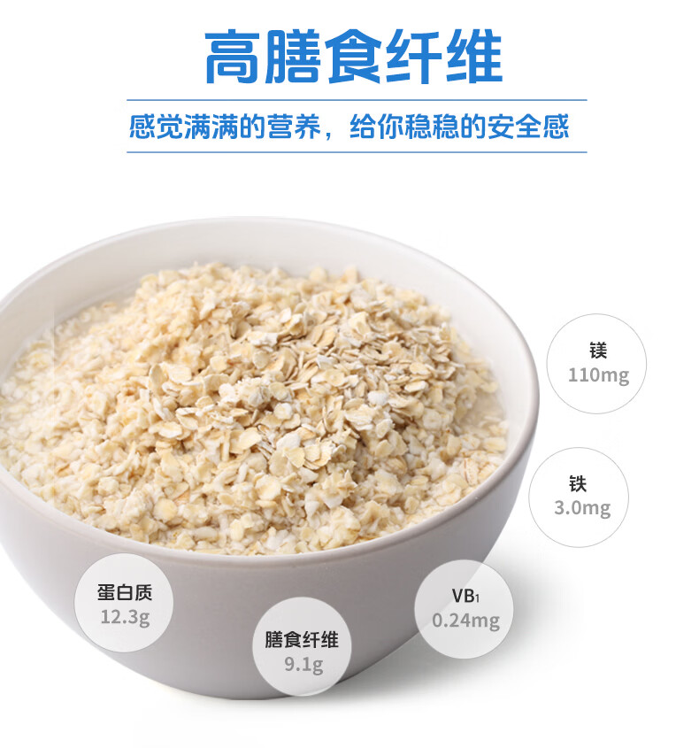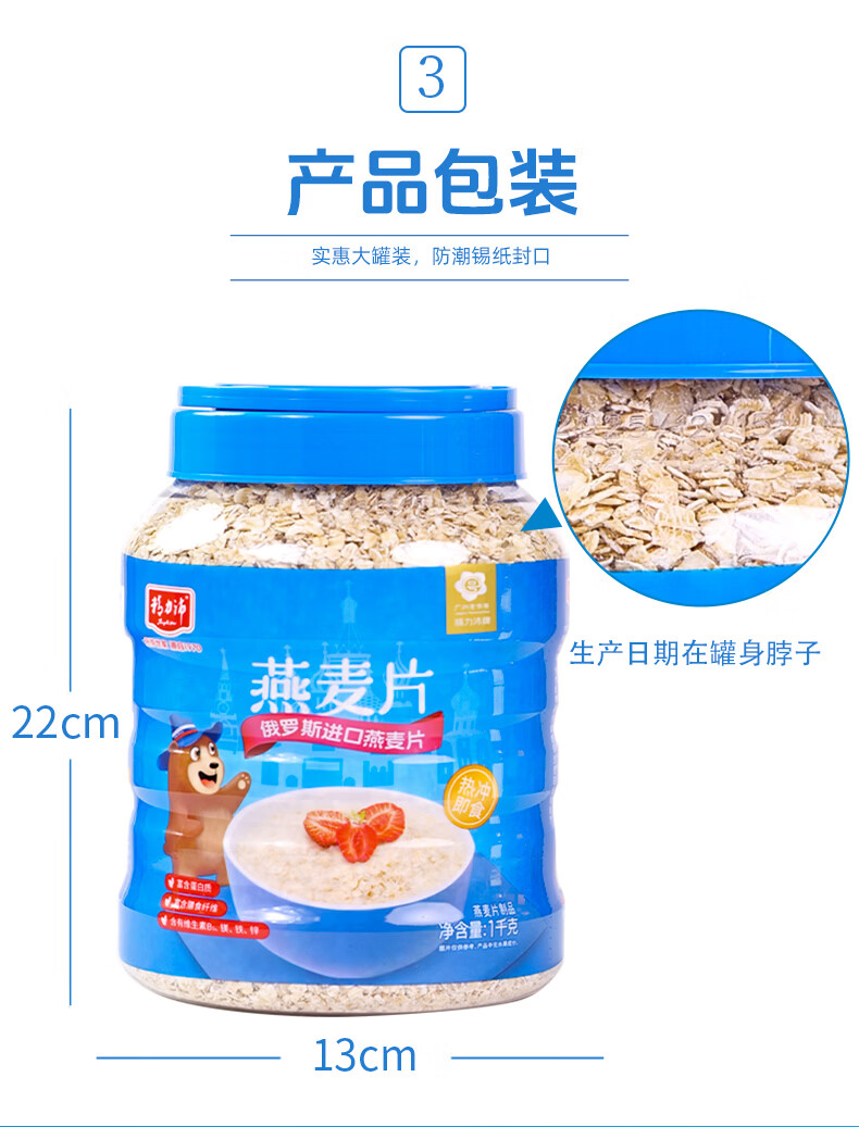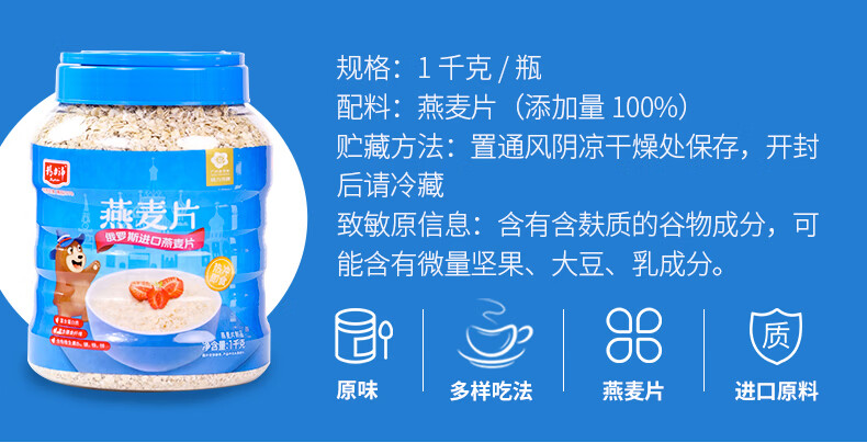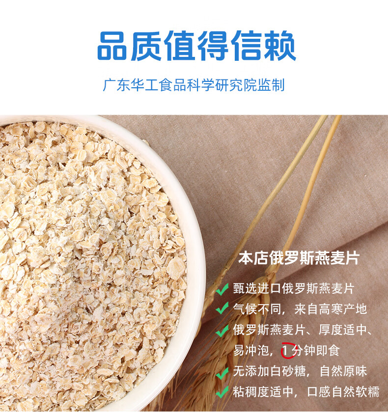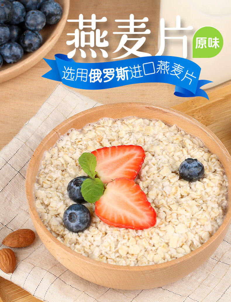 精力沛 俄罗斯 原味高纤早餐 免煮快冲即食纯燕麦片1kg健康代餐麦片 俄罗斯原味麦片 1000g *2罐