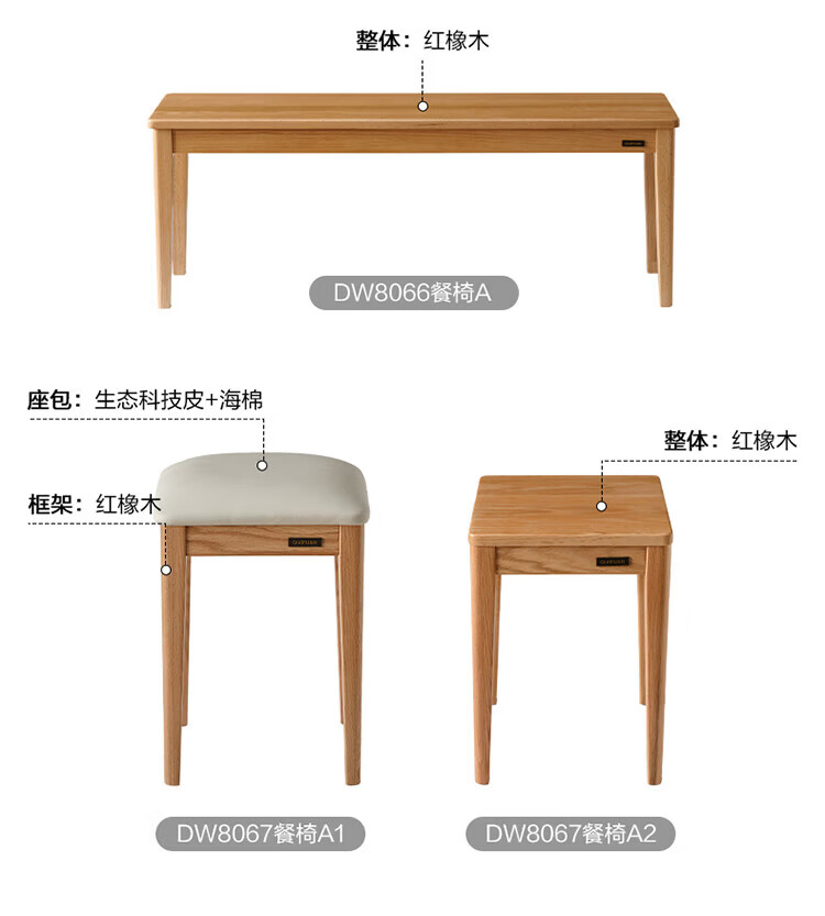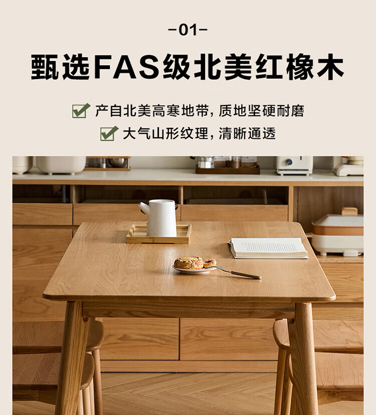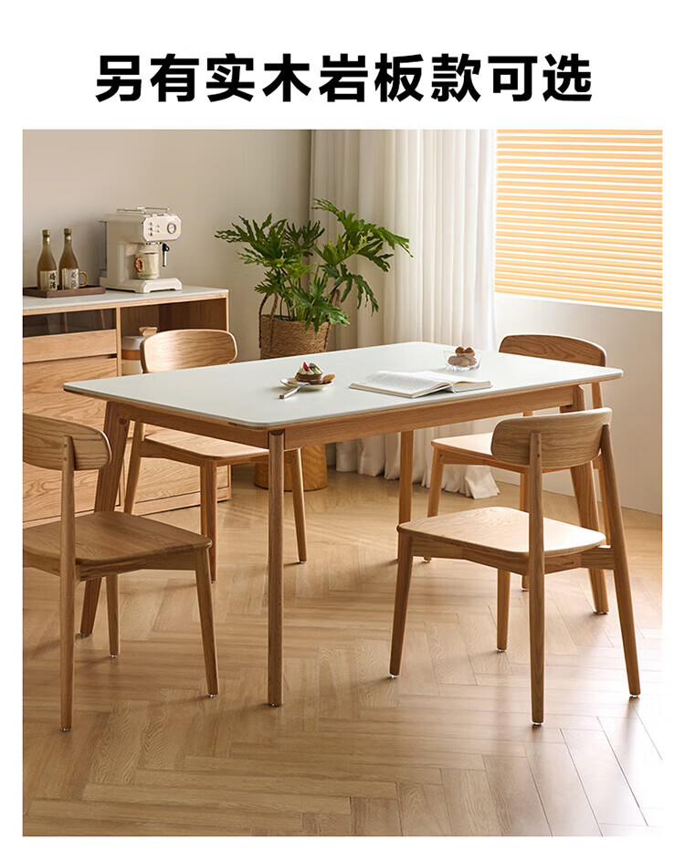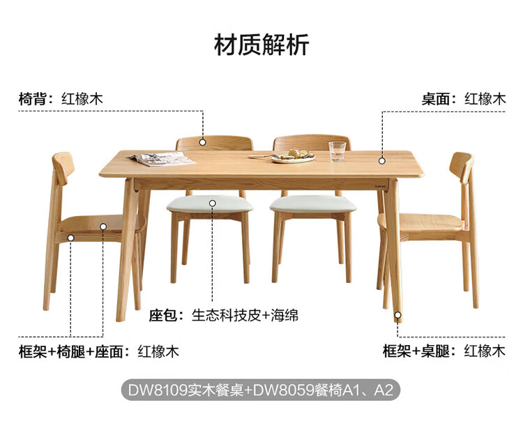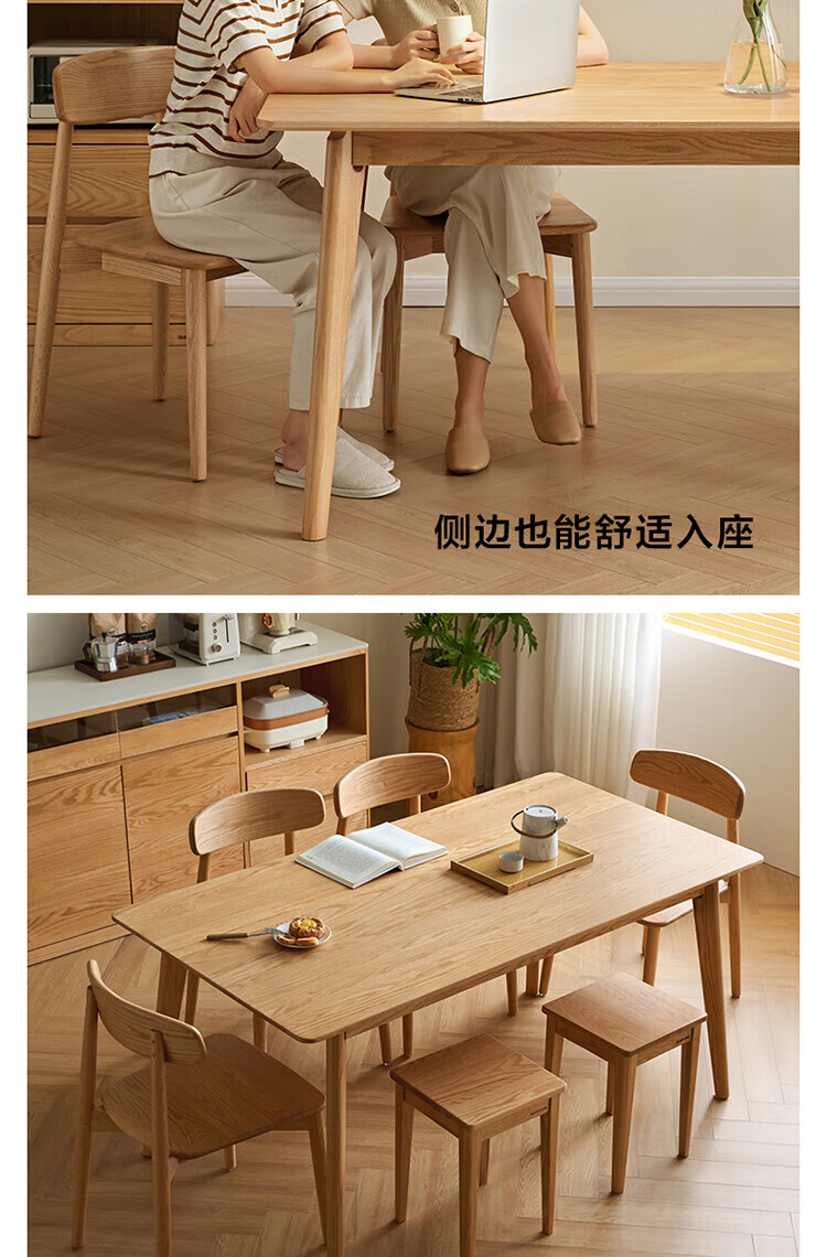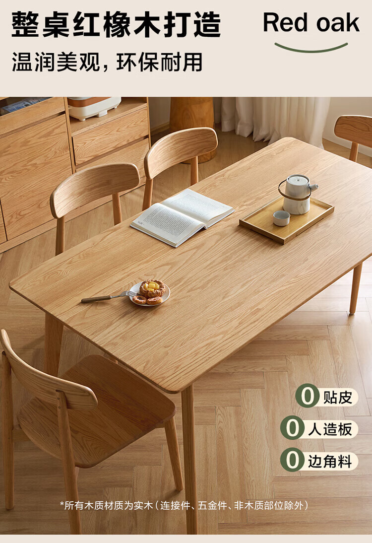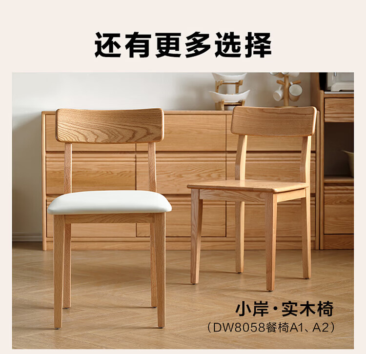 全友家居红橡木全实木餐桌原木风长方形吃饭桌椅子组合套装家用办公桌 小岸椅*2