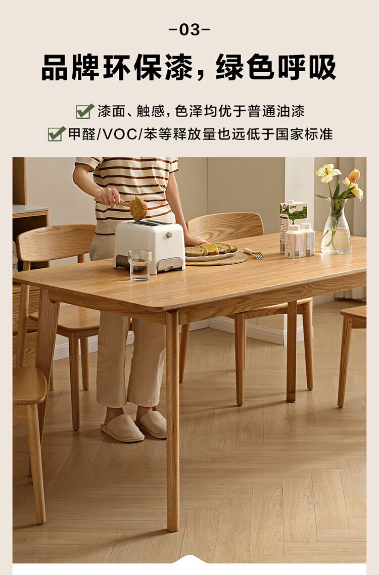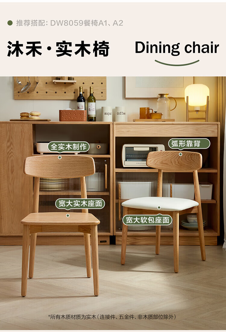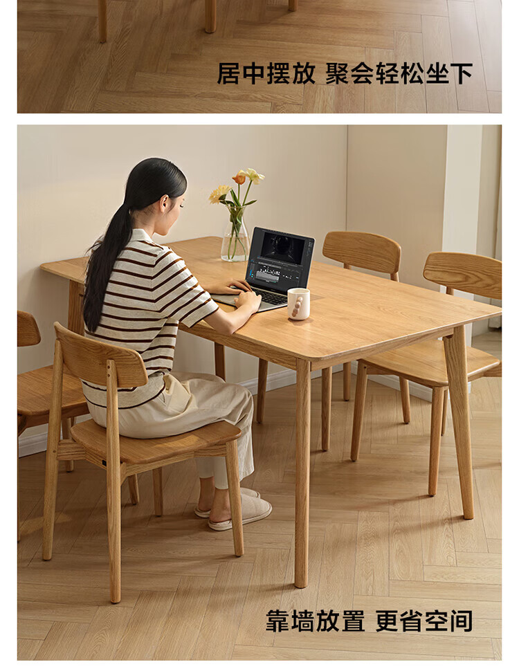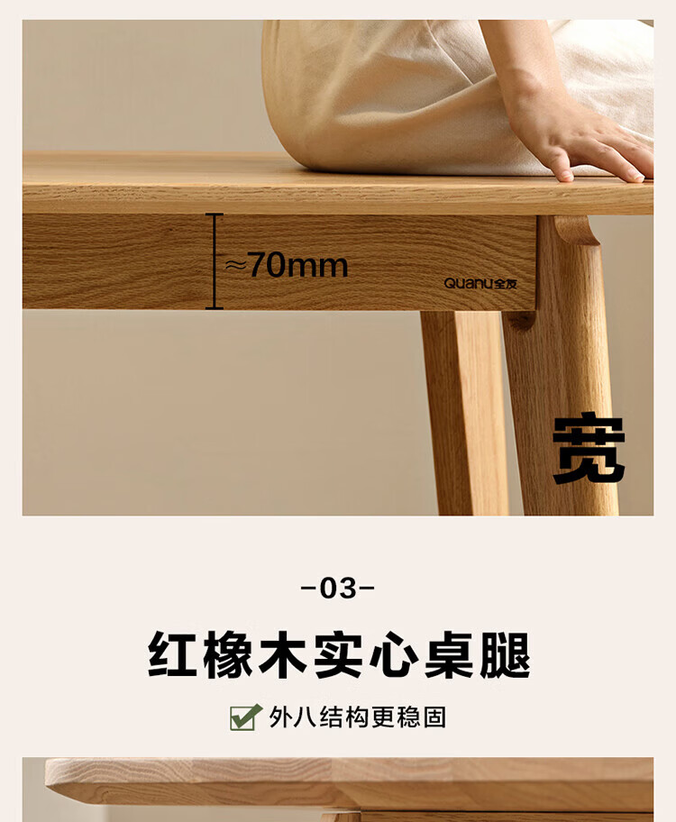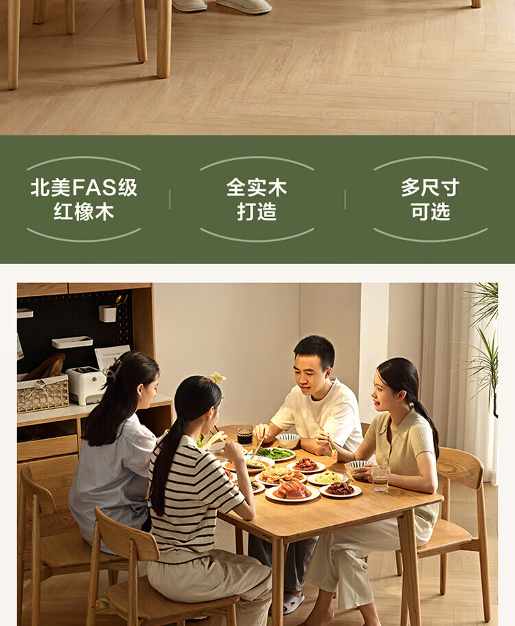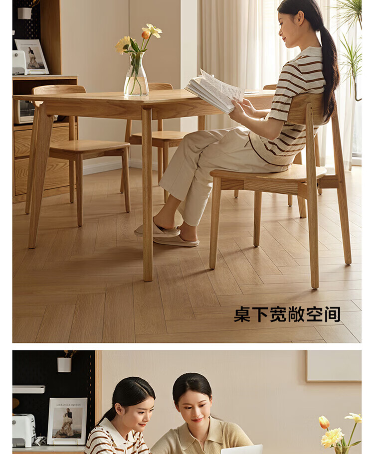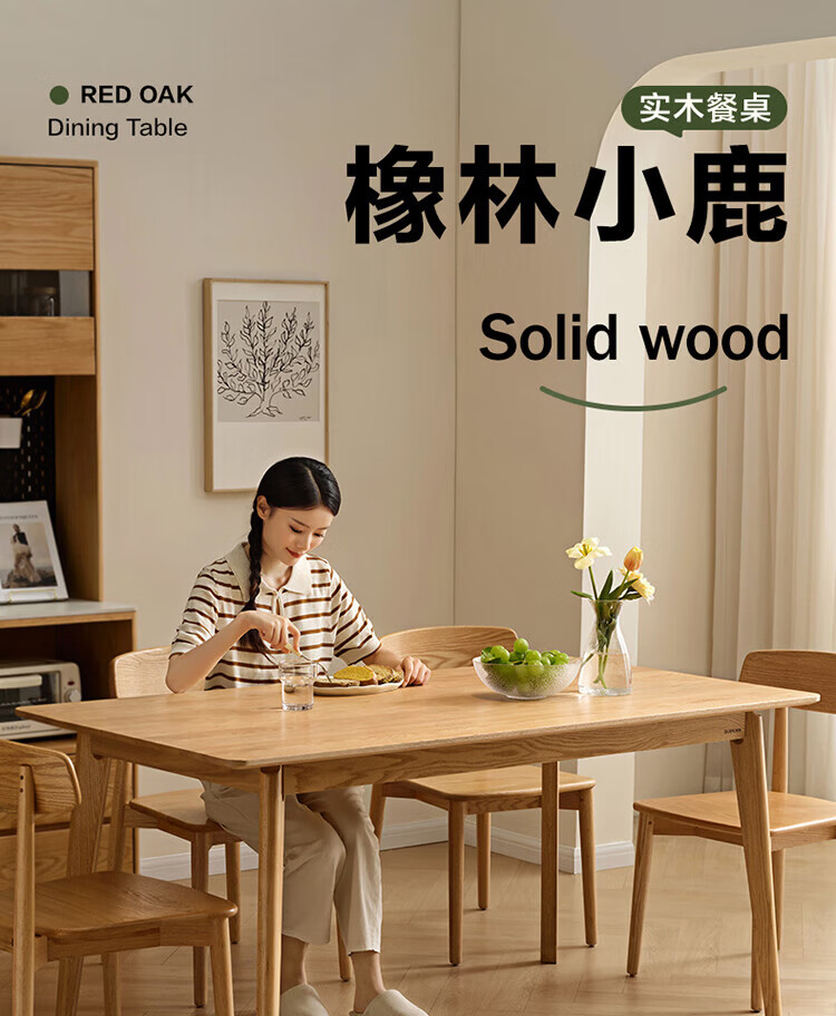 全友家居红橡木全实木餐桌原木风长方形吃饭桌椅子组合套装家用办公桌 小岸椅*2