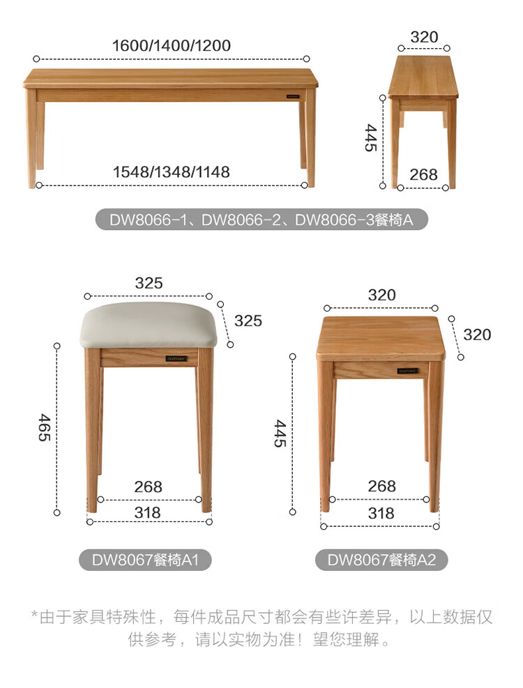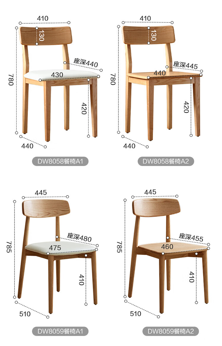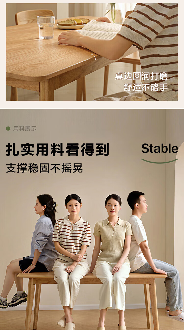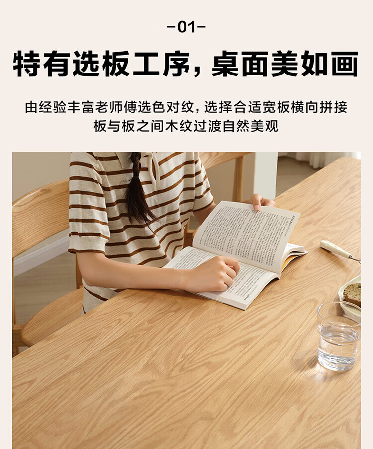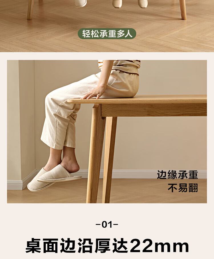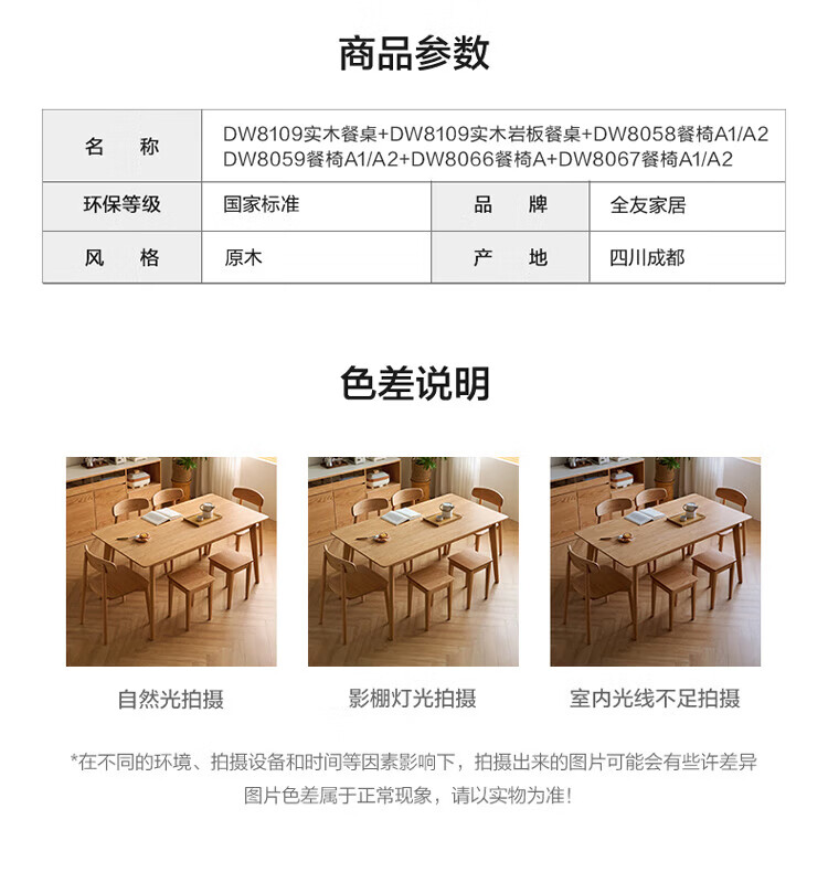 全友家居红橡木全实木餐桌原木风长方形吃饭桌椅子组合套装家用办公桌 小岸椅*2