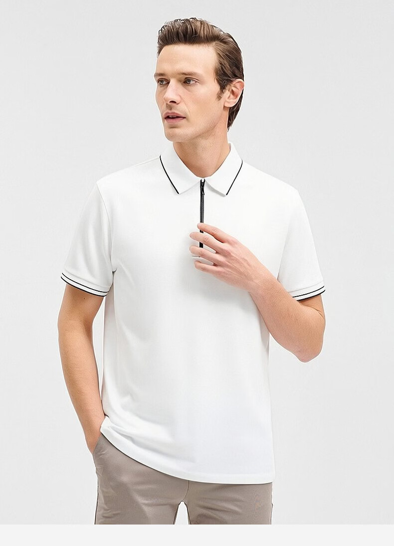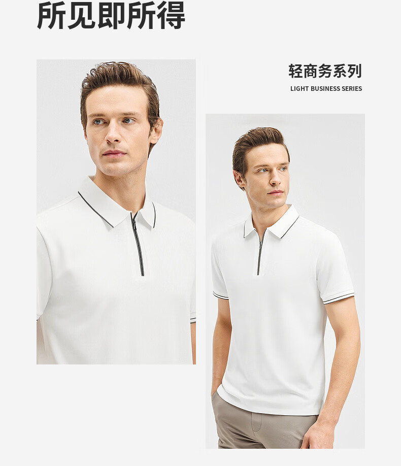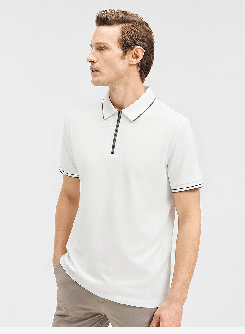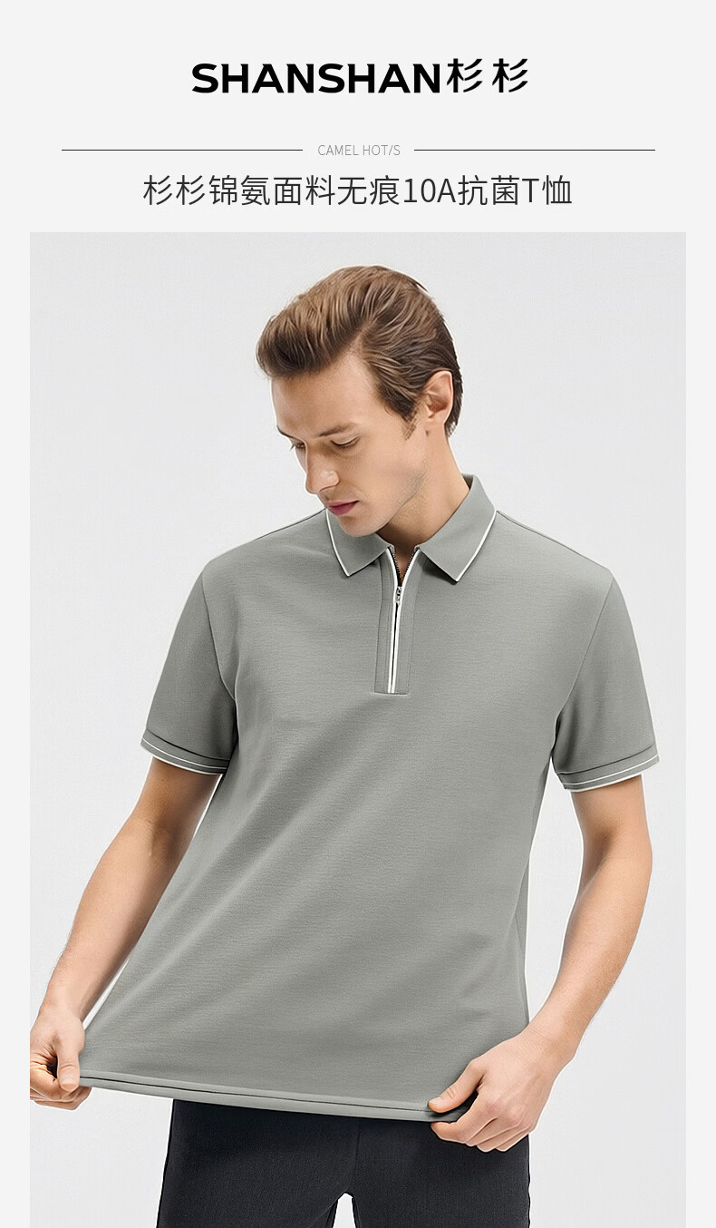 SHANSHAN杉杉【10A抗菌凉感】短袖t恤男拉链领POLO衫商务休闲夏季 白色 M /170