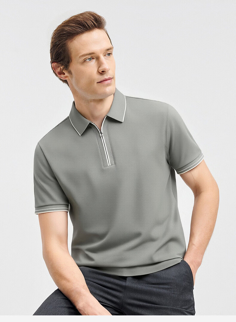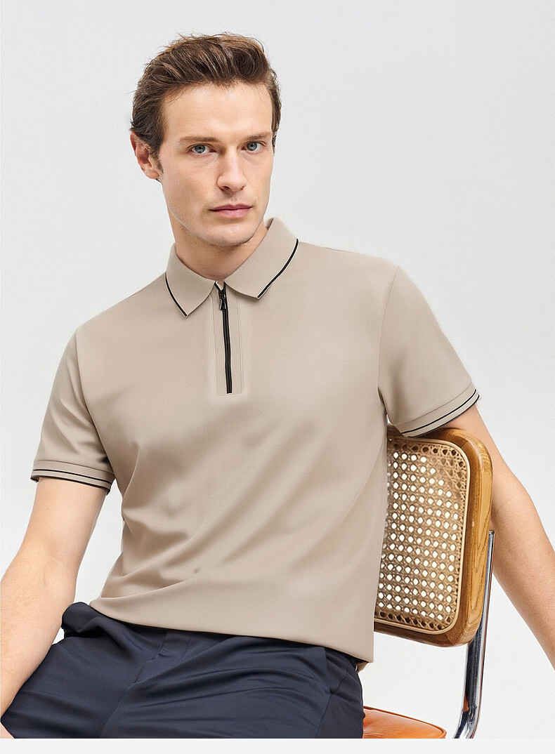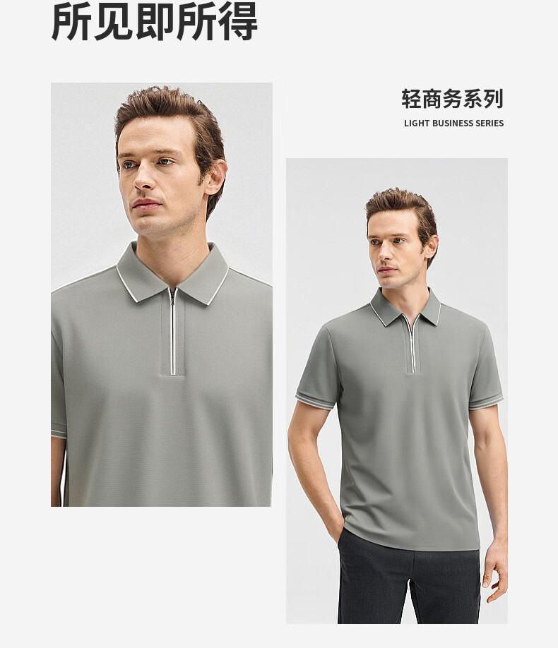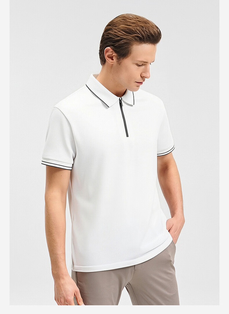 SHANSHAN杉杉【10A抗菌凉感】短袖t恤男拉链领POLO衫商务休闲夏季 白色 M /170