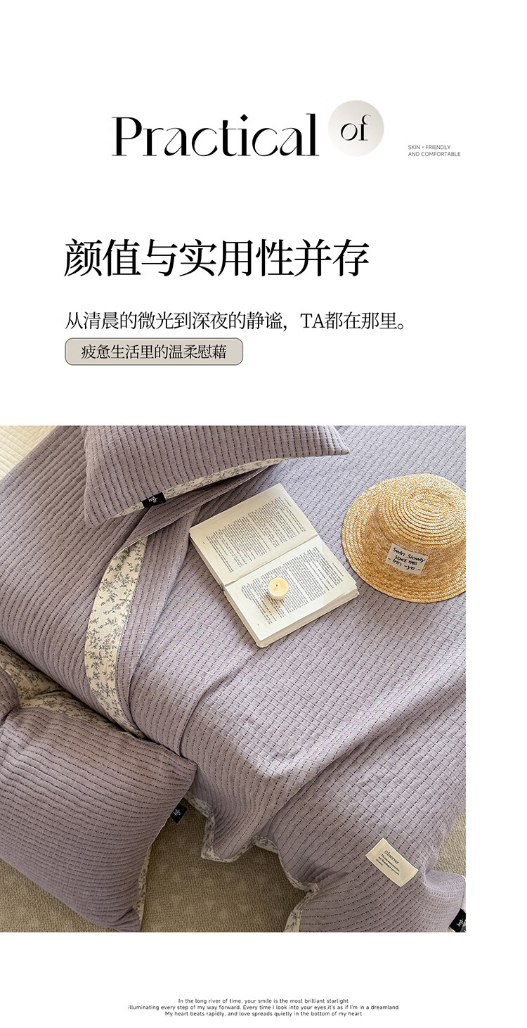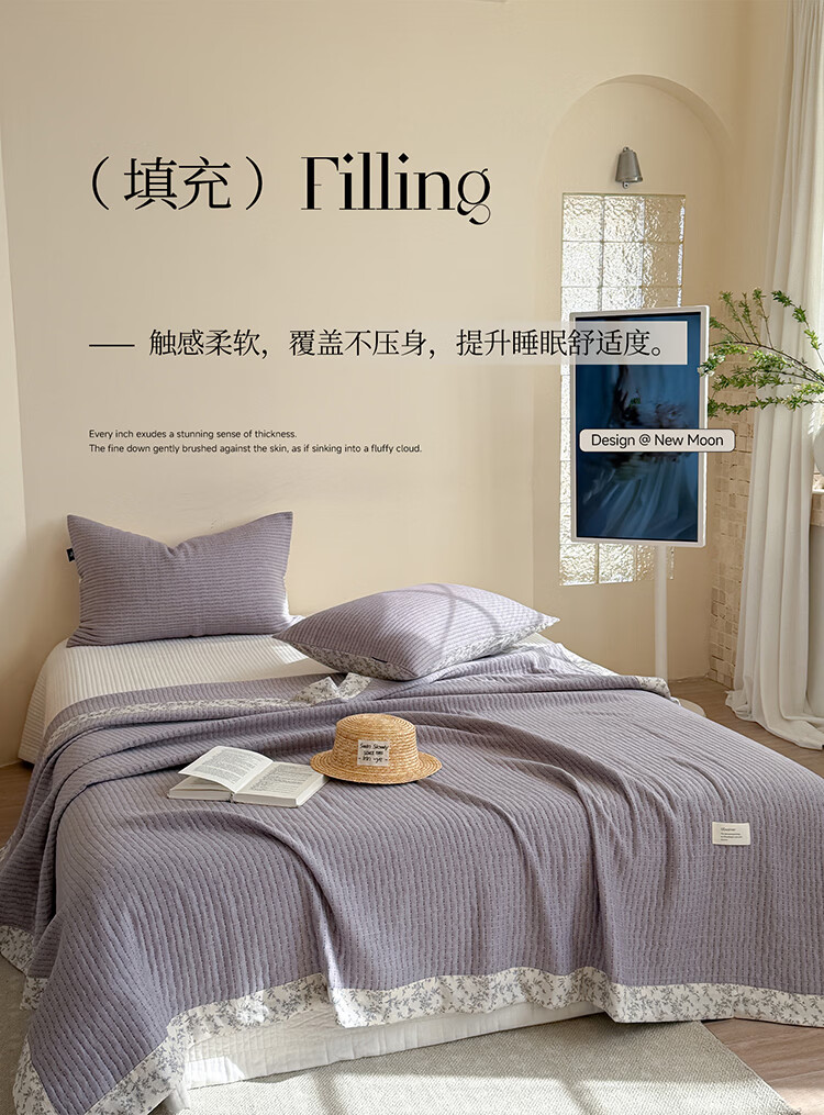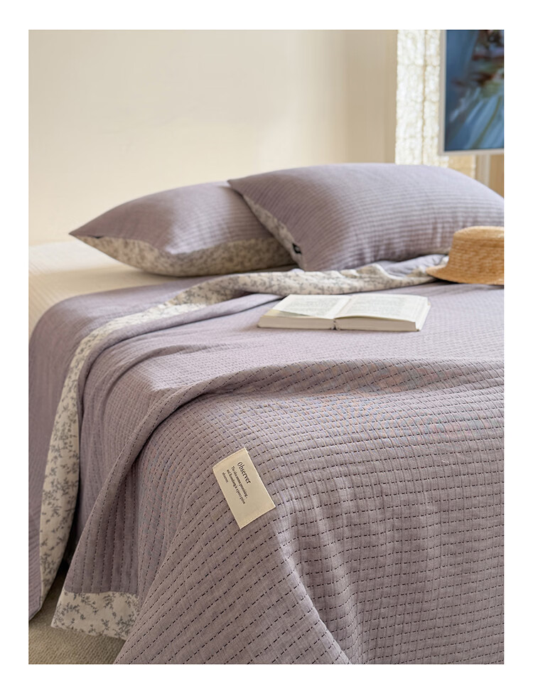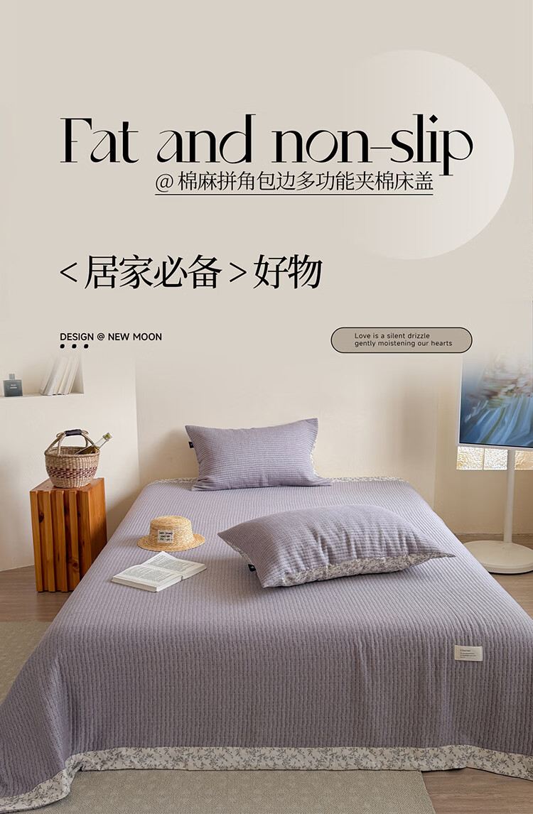 ROLAND LIVE全棉夹棉床单单件全棉多功能床盖四季通用榻榻米家用加厚床单 MMG 北岛系列床盖-仙紫 单床盖200*230cm