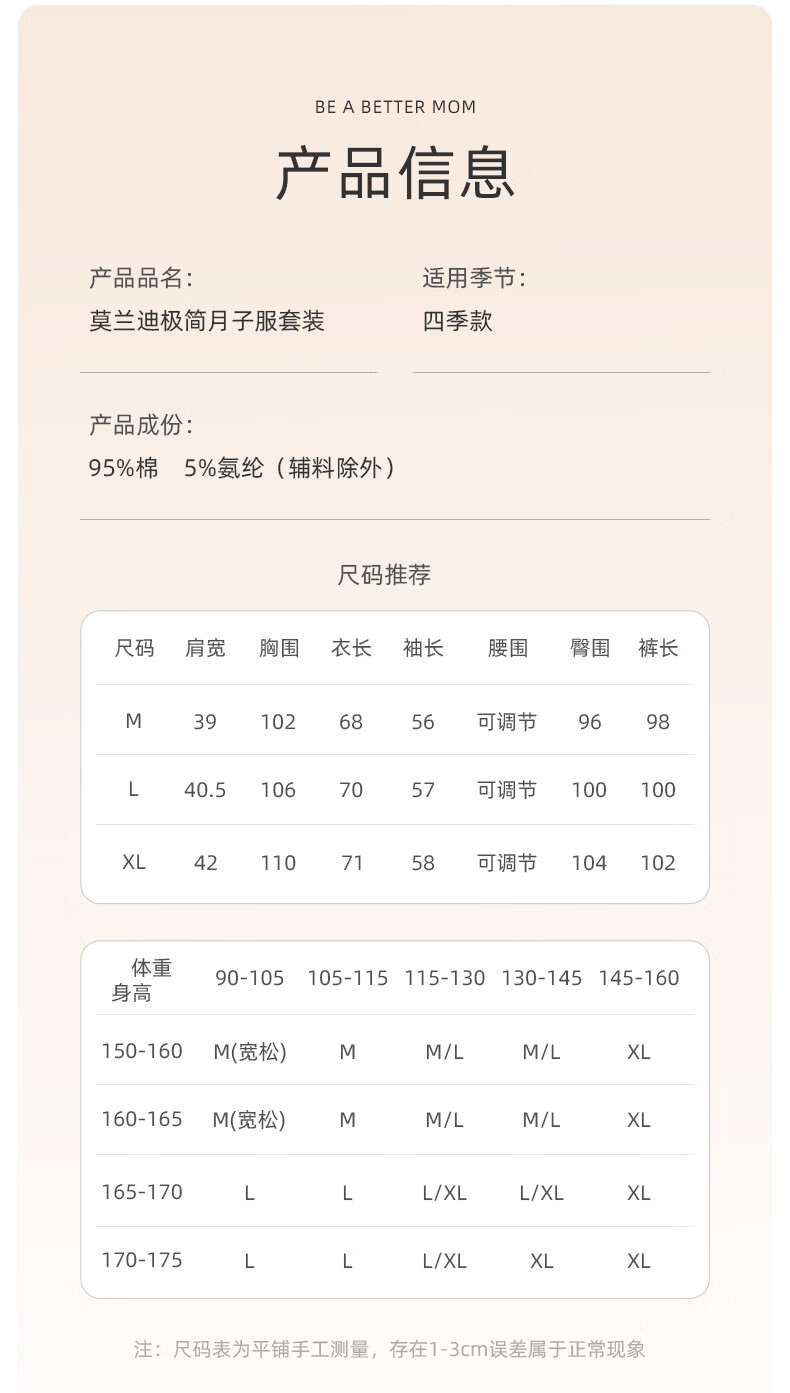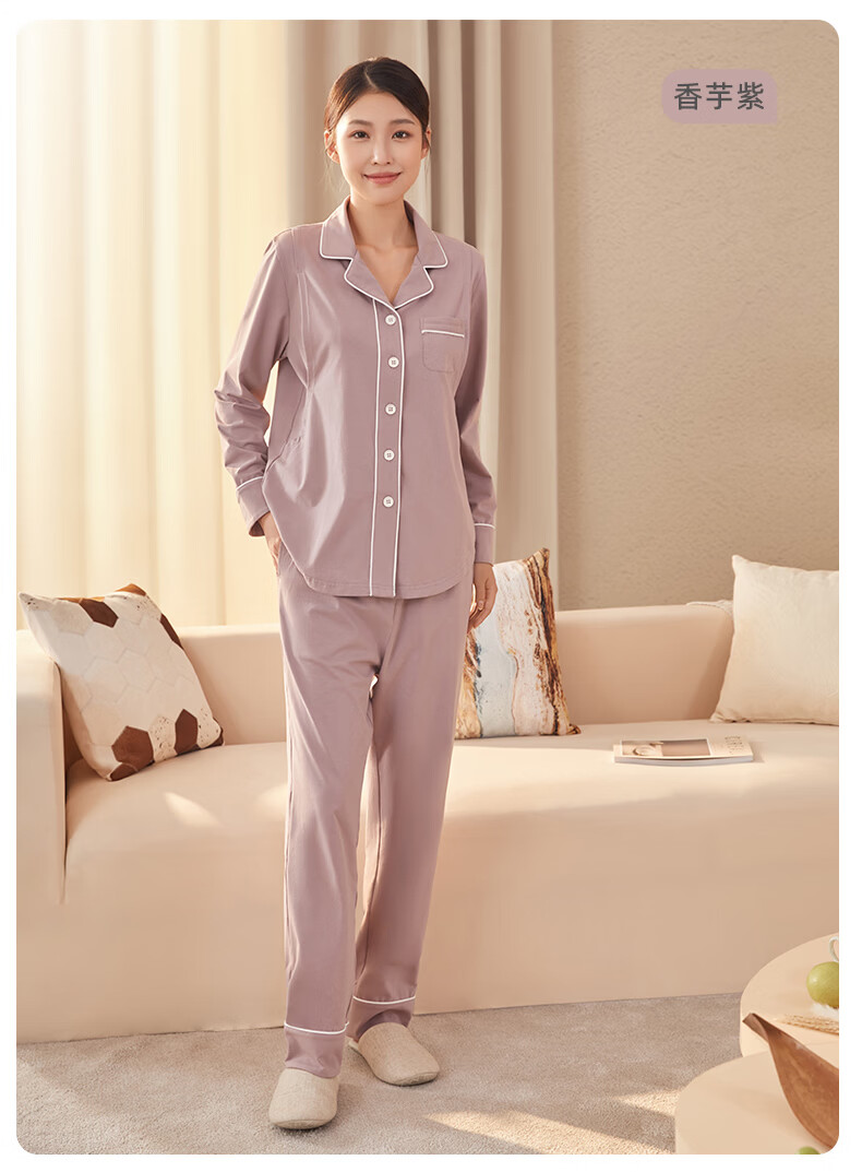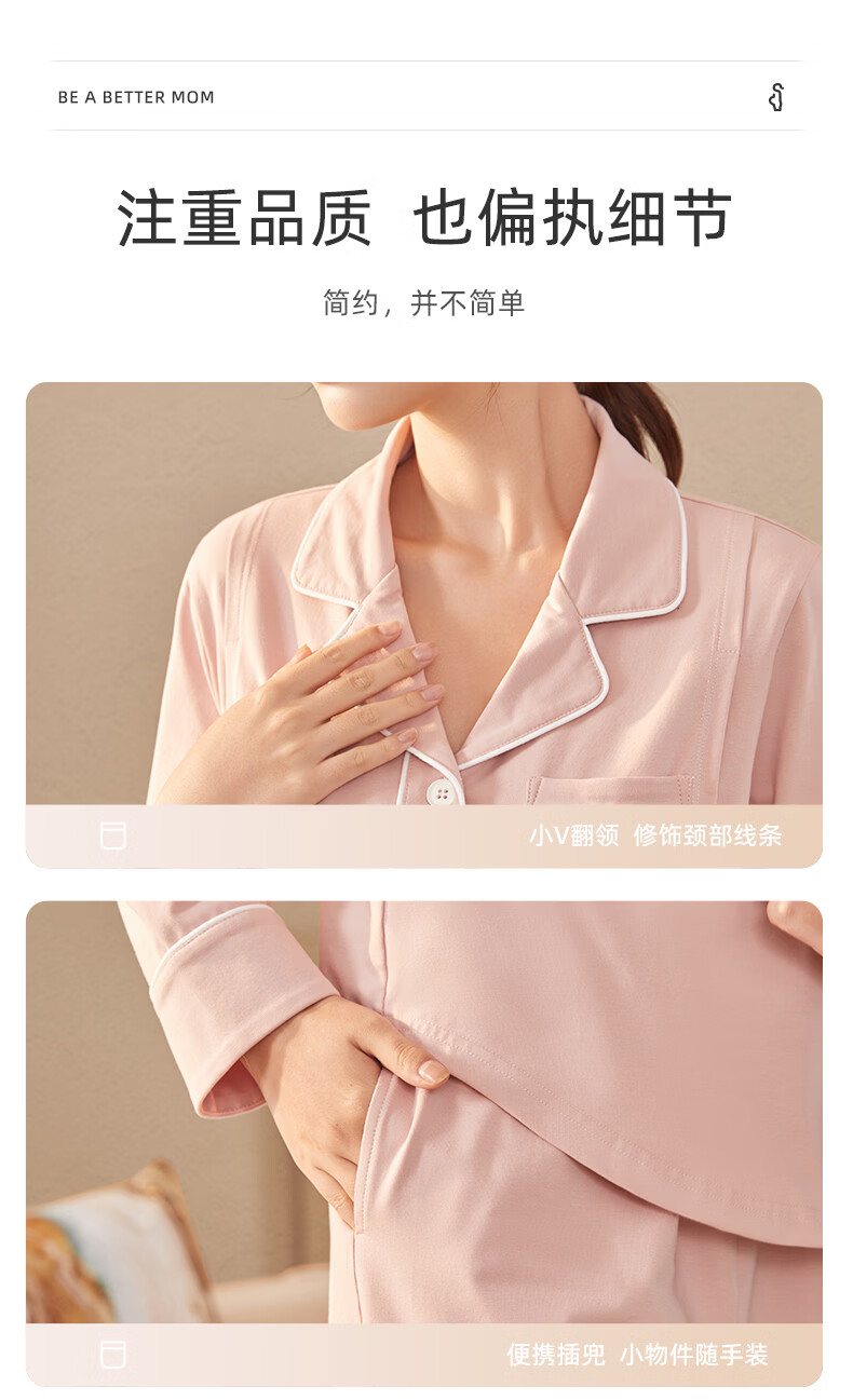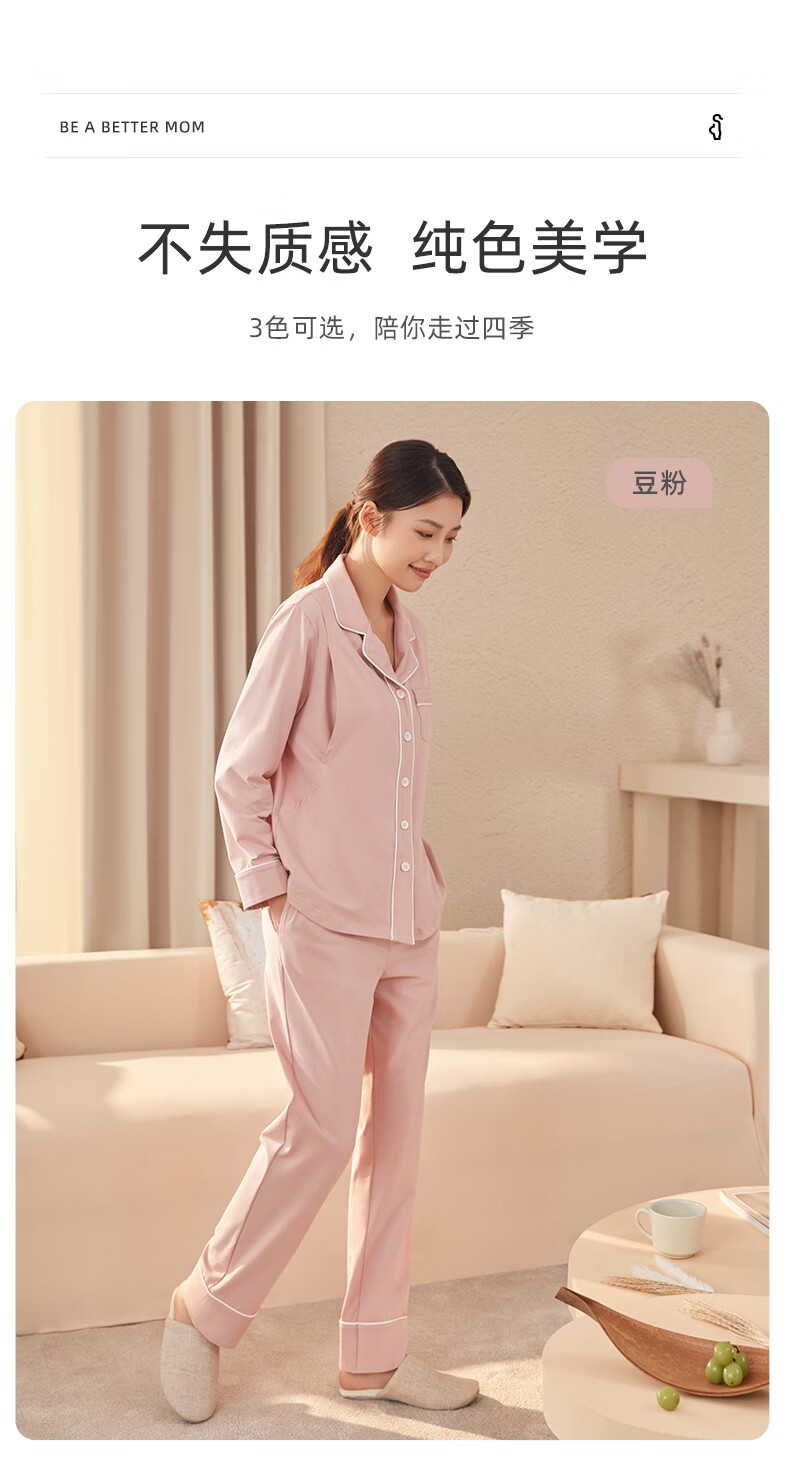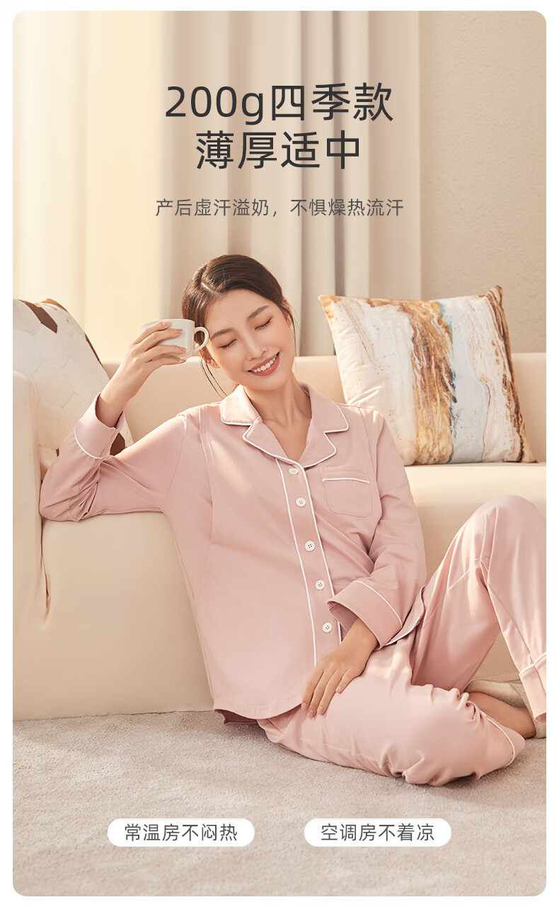 月子服秋冬【极简主义】棉产后孕妇睡衣哺乳家居服套装 豆粉XL码