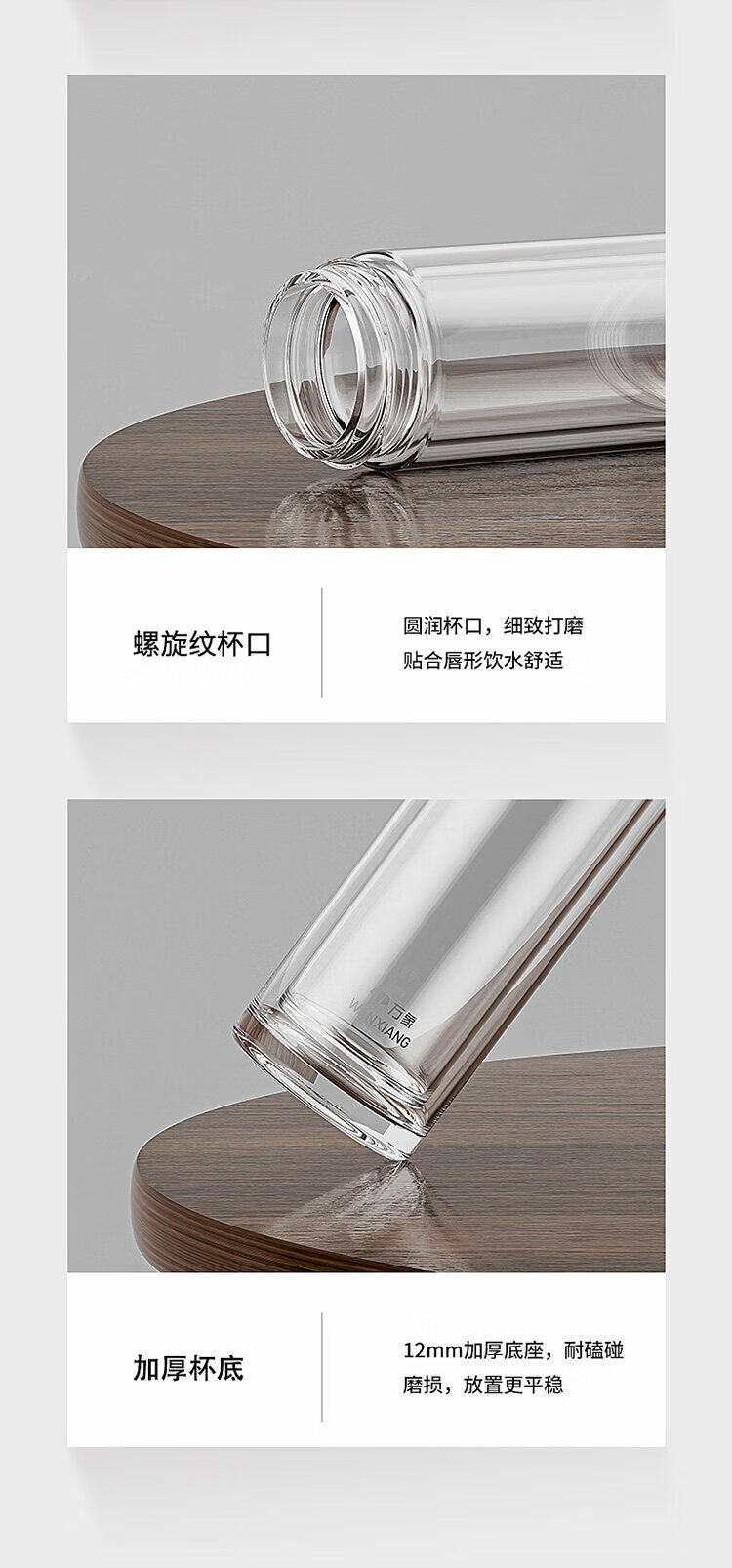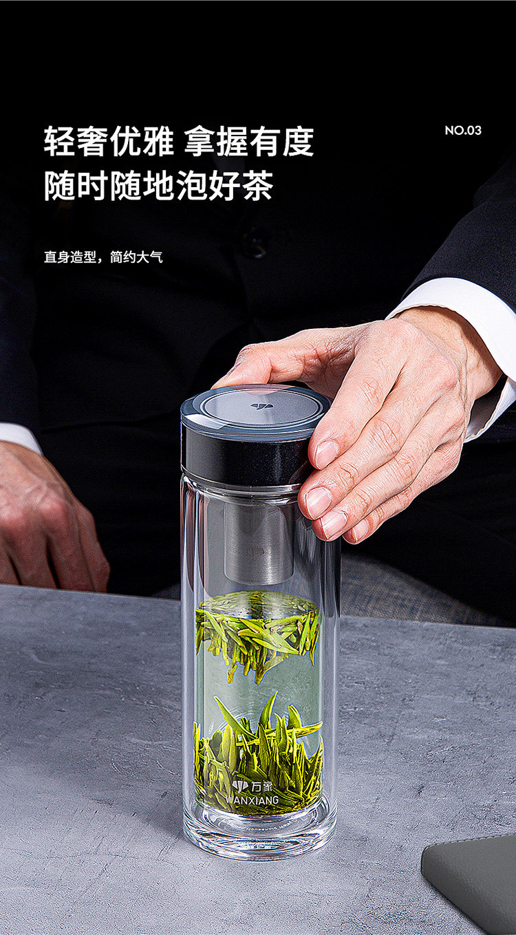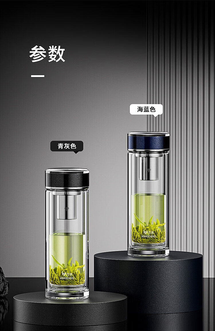 万象(WANXIANG)双层玻璃杯男女士车载便携隔热茶杯礼盒送礼透明家用办公泡茶杯子 V312L-青灰色 360ml 礼盒装 送杯刷