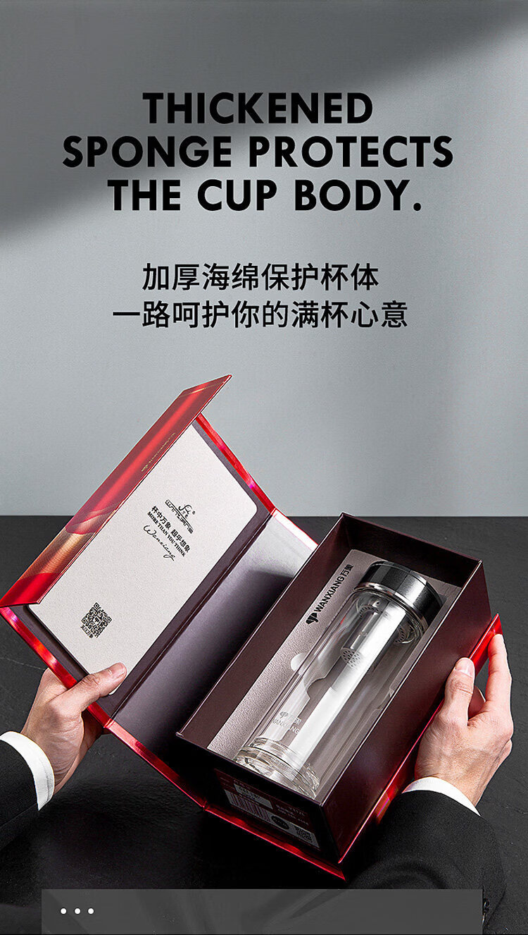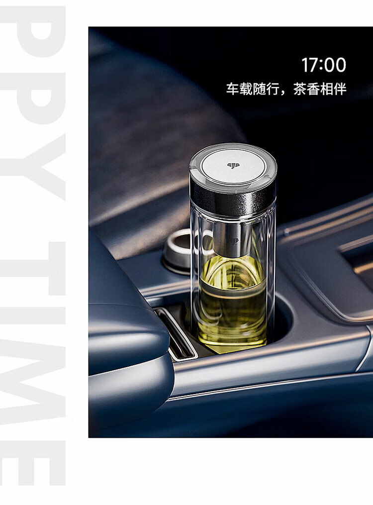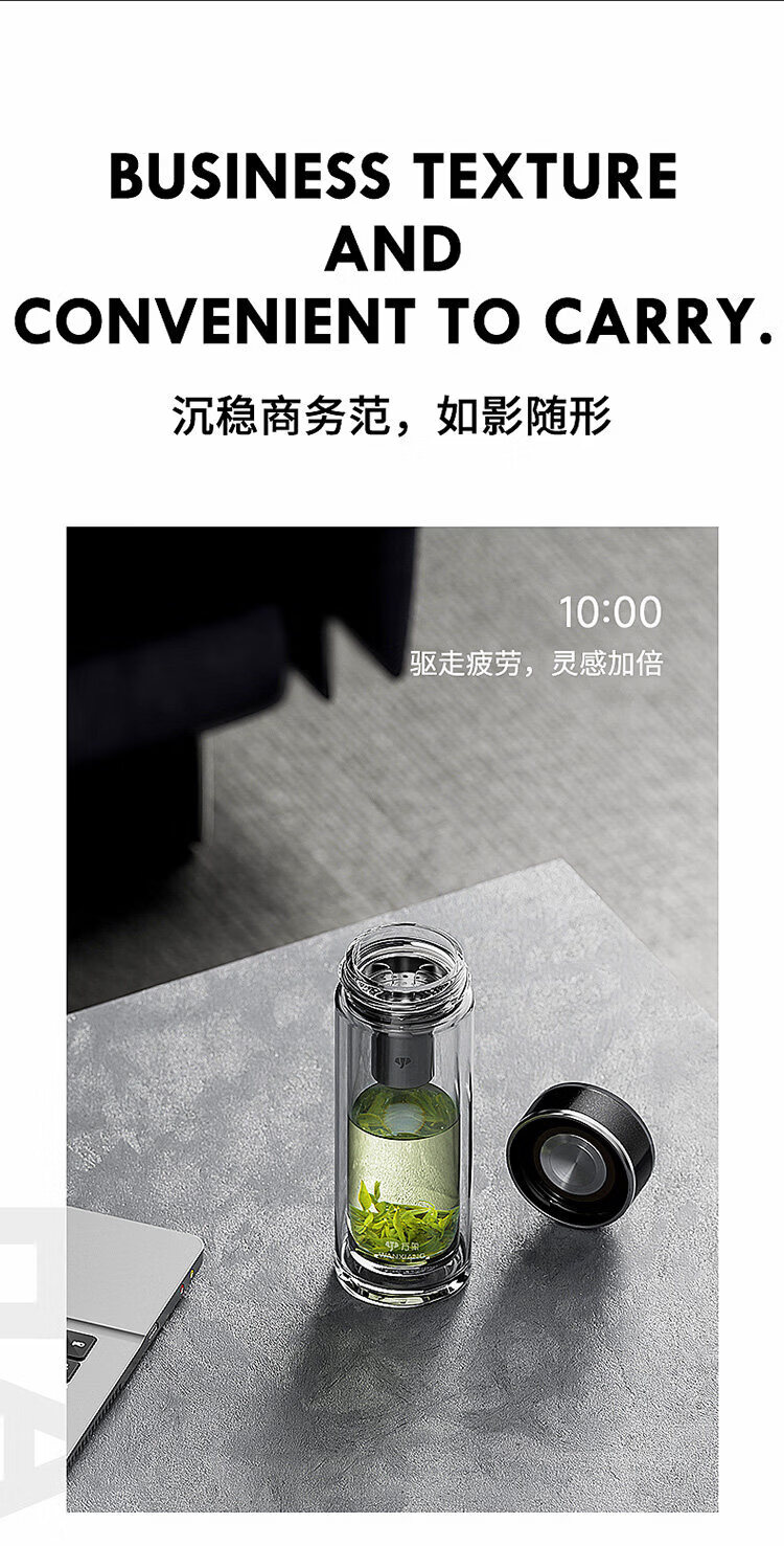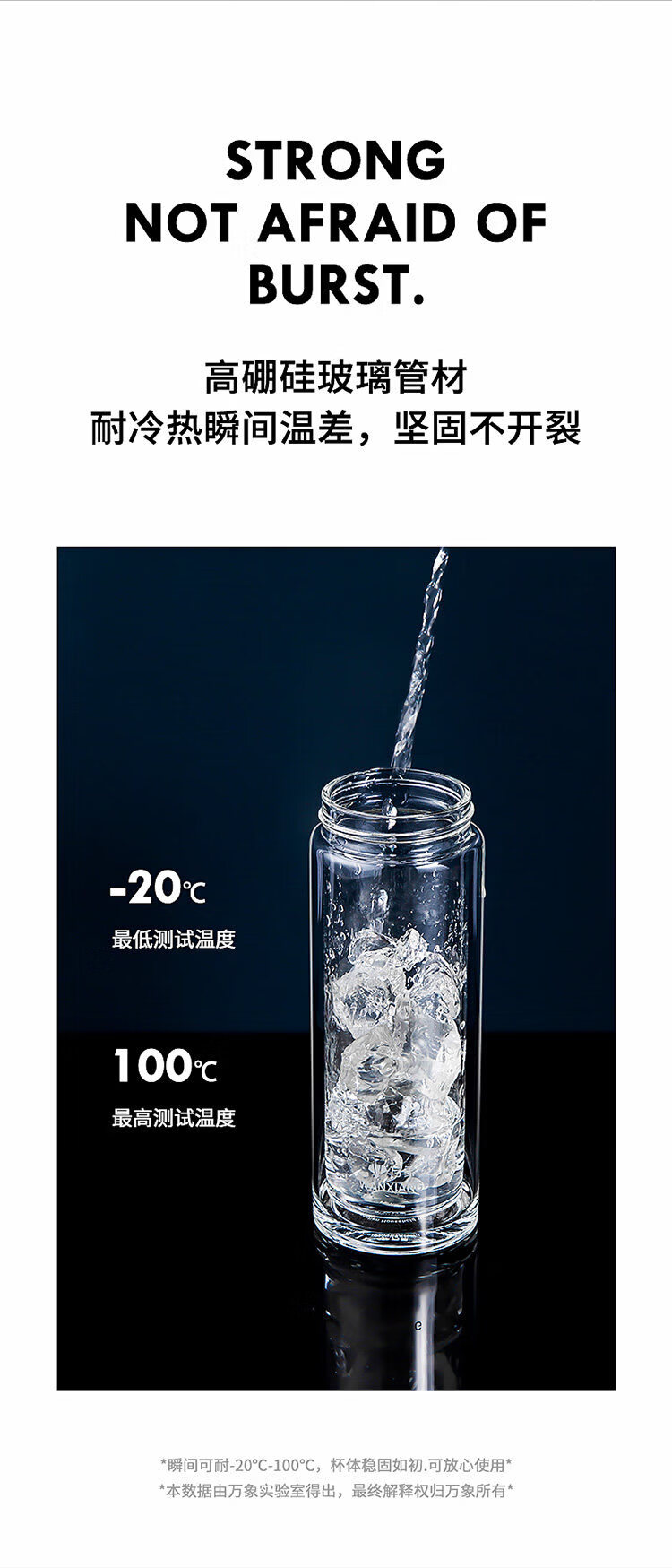 万象(WANXIANG)双层玻璃杯男女士车载便携隔热茶杯礼盒送礼透明家用办公泡茶杯子 V312L-青灰色 360ml 礼盒装 送杯刷