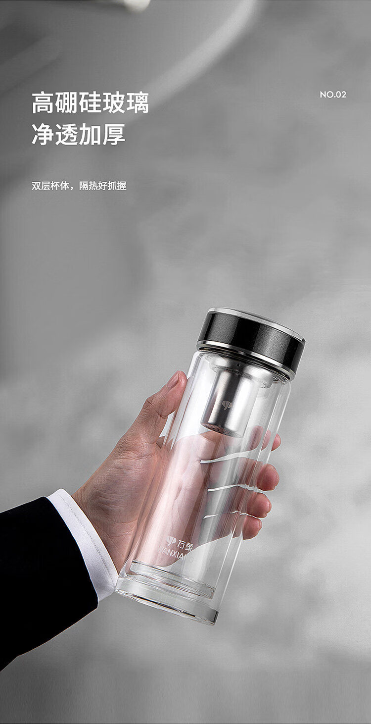 富光 男女士双层玻璃杯 高硼硅泡茶杯 茶水分离水杯带茶隔杯子500ml