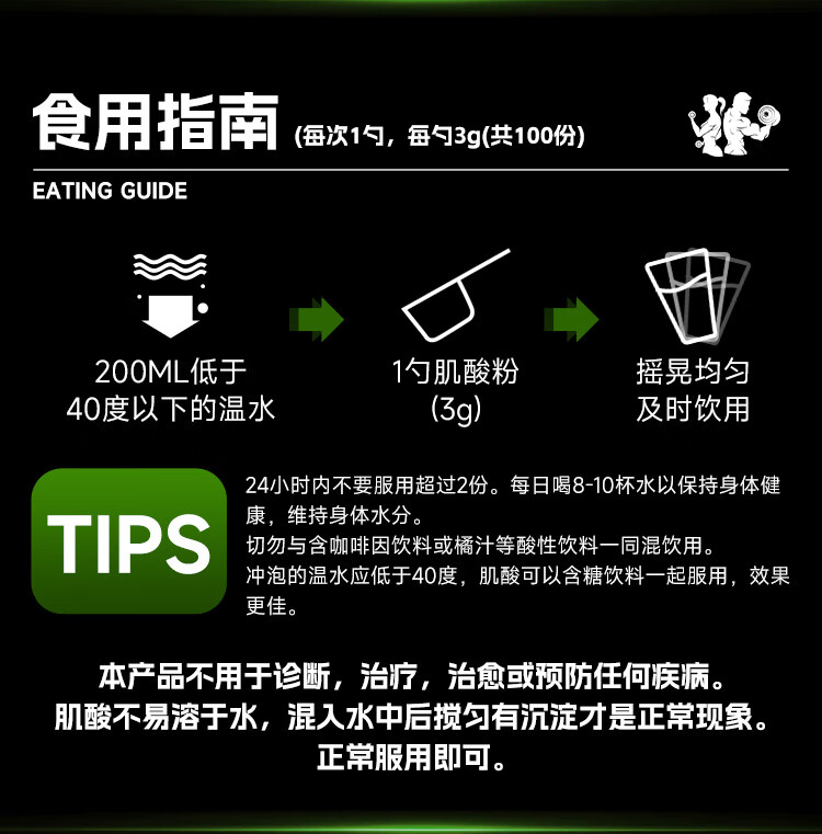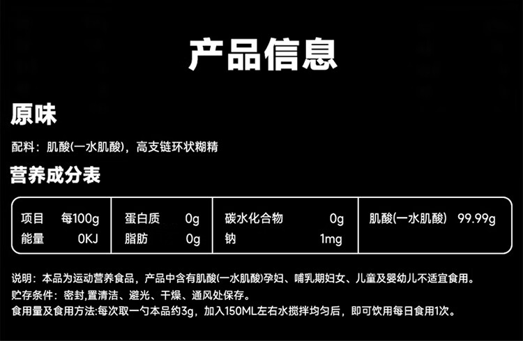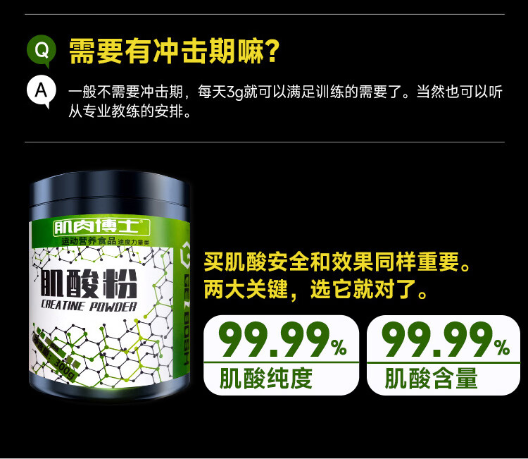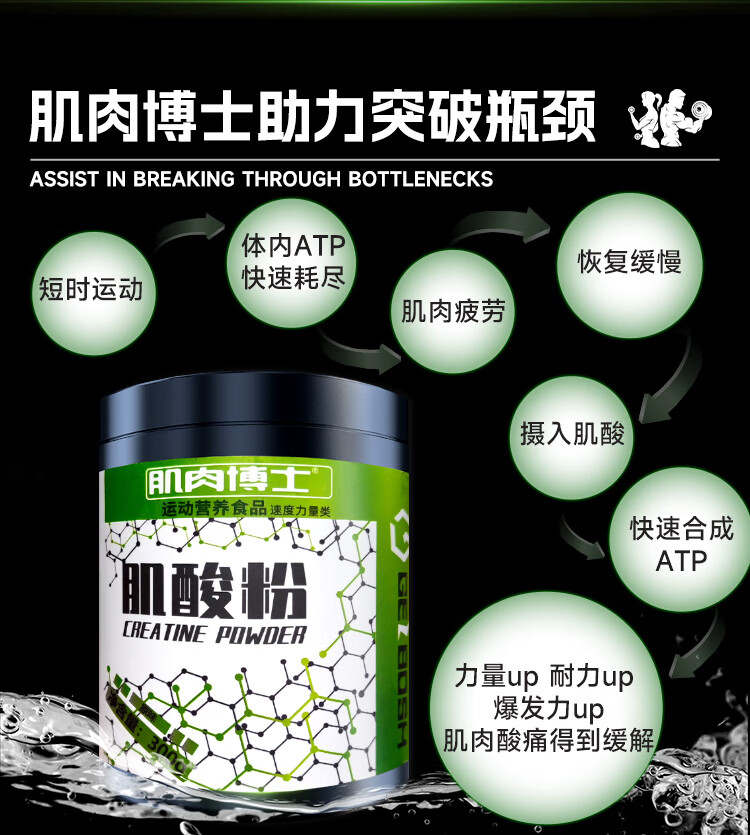 肌肉博士一水肌酸300g肌酸粉含量99.99% 纯度99.99% 马拉松健身营养粉原味