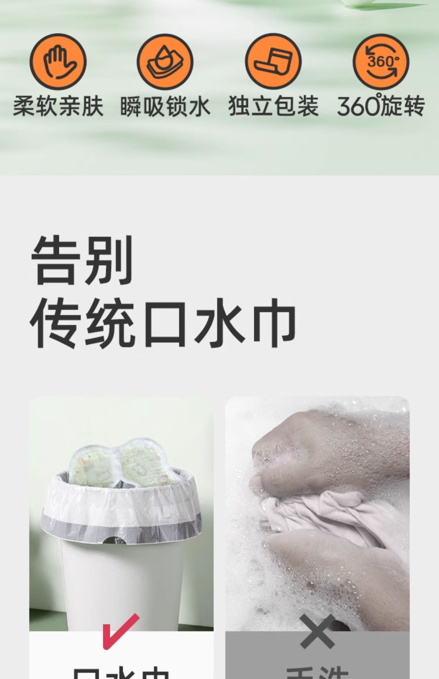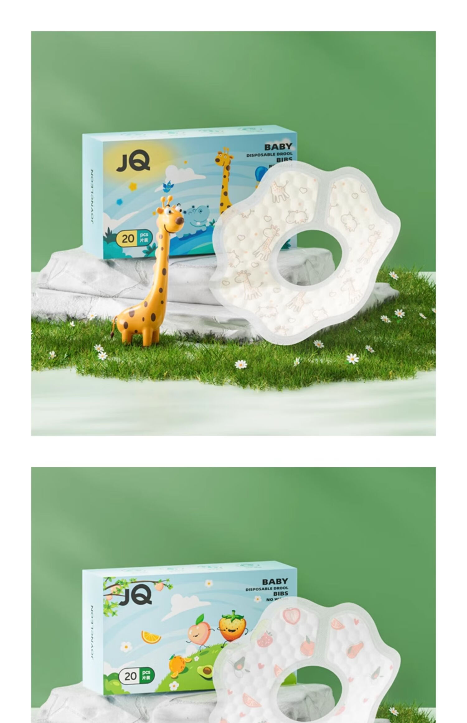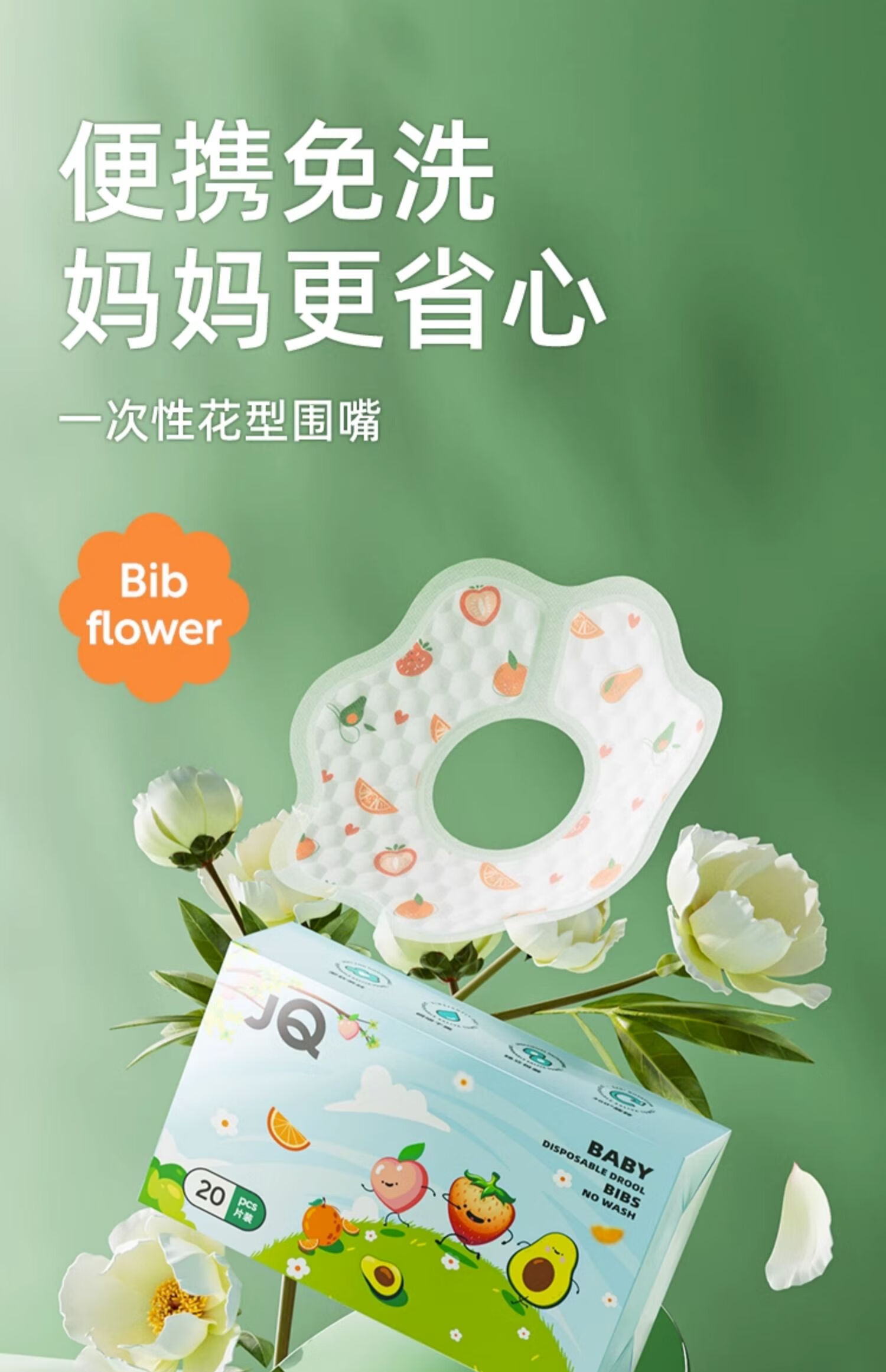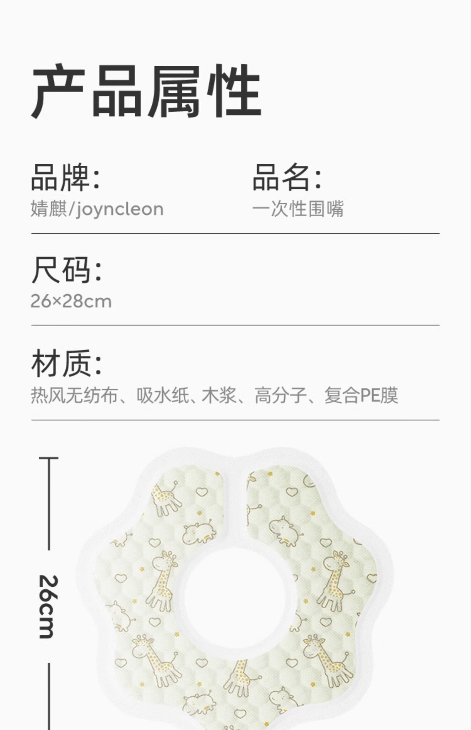 婧麒(JOYNCLEON)一次性口水巾婴儿宝宝围嘴新生儿可旋转免洗围兜50片 Jyp62199
