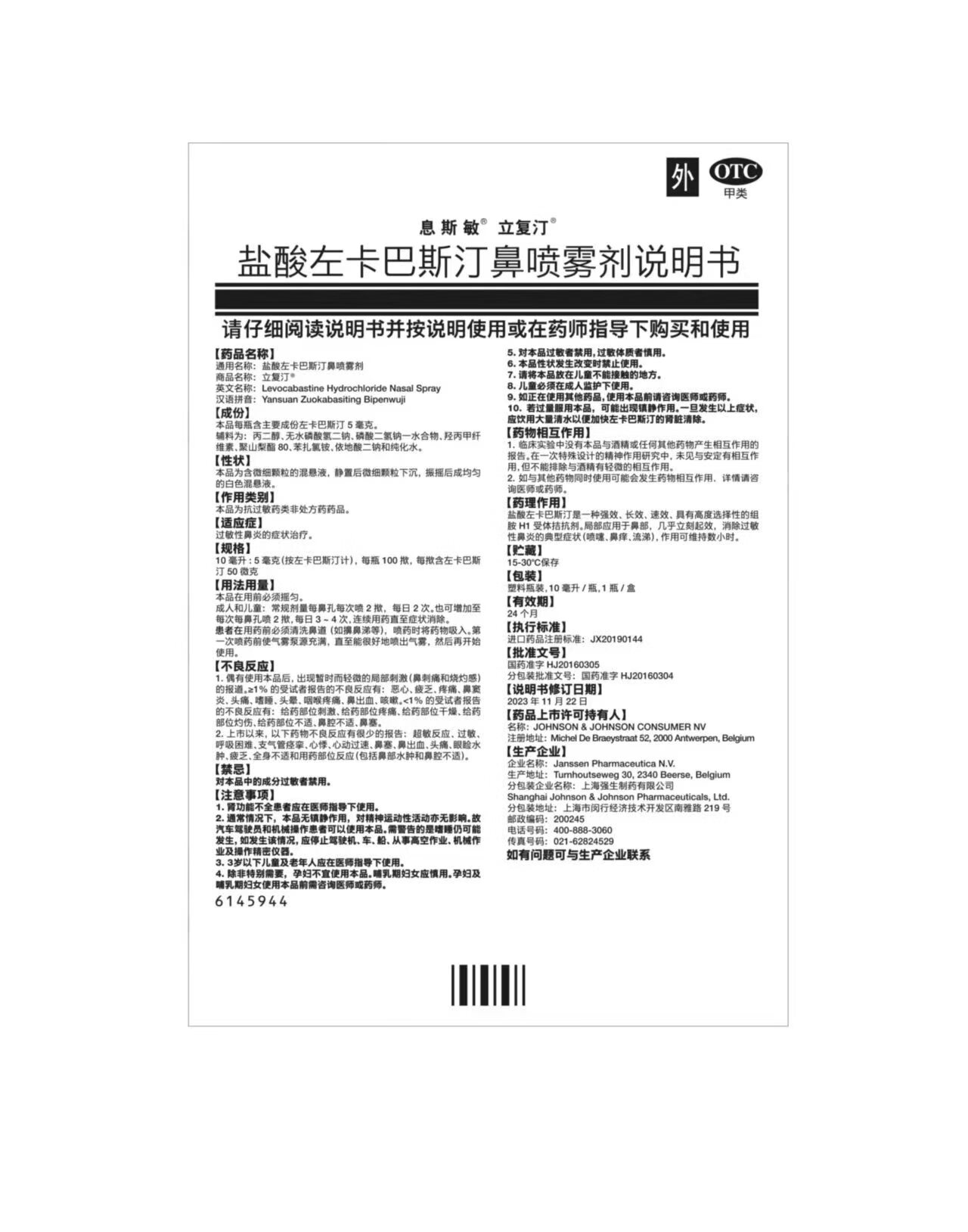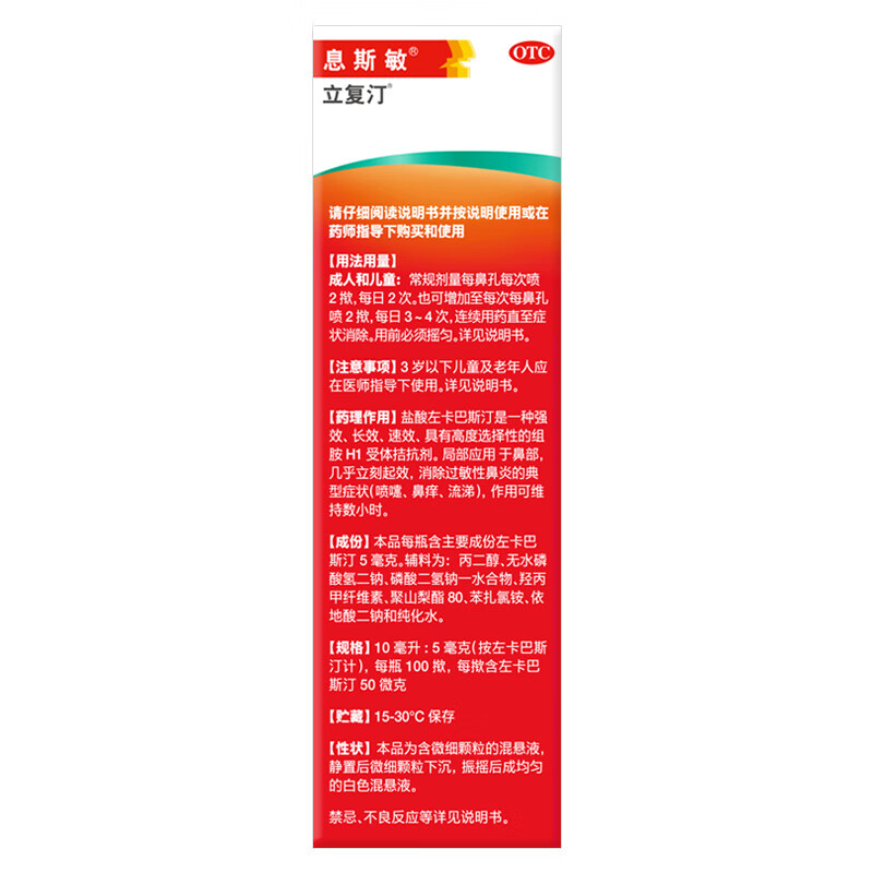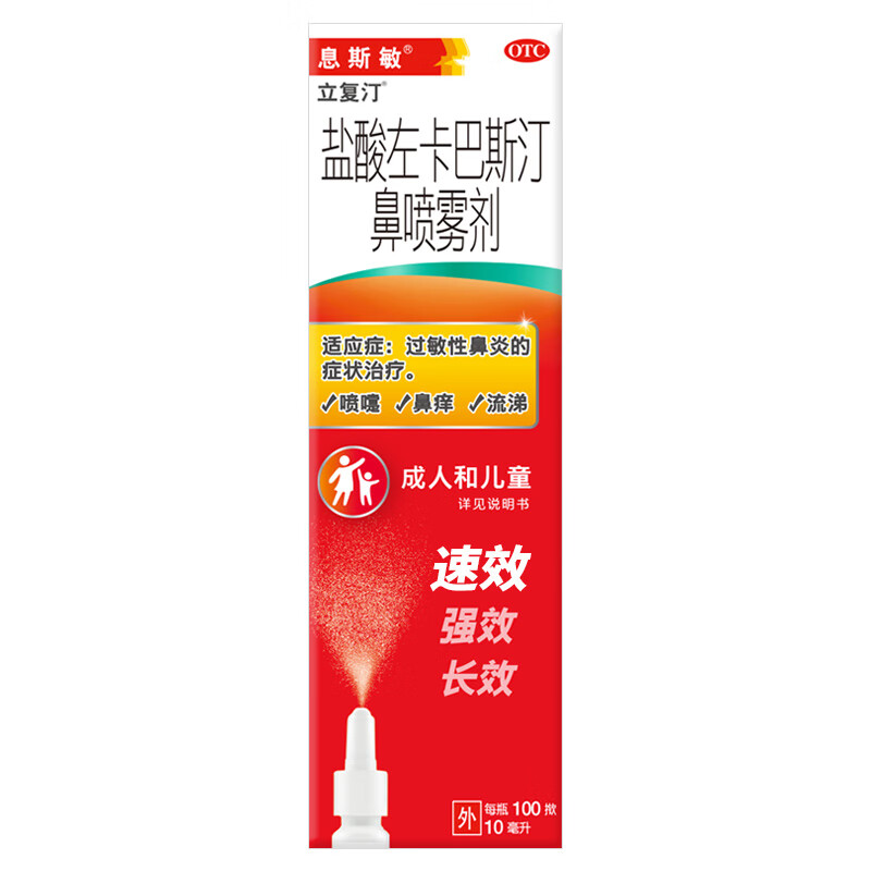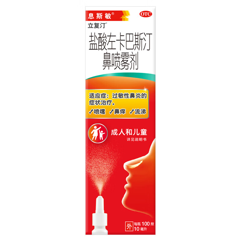 【原研进口】息斯敏立复汀盐酸左卡巴斯汀鼻喷雾剂10ml儿童鼻炎喷剂过敏性鼻炎专用药可搭生理海盐水不含激素非氯雷他定片苍鹅鼻炎片西替利嗪片通窍鼻炎颗粒鼻塞流鼻涕鼻子痒打喷嚏