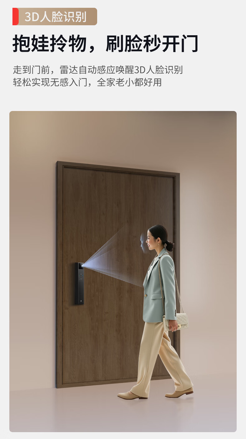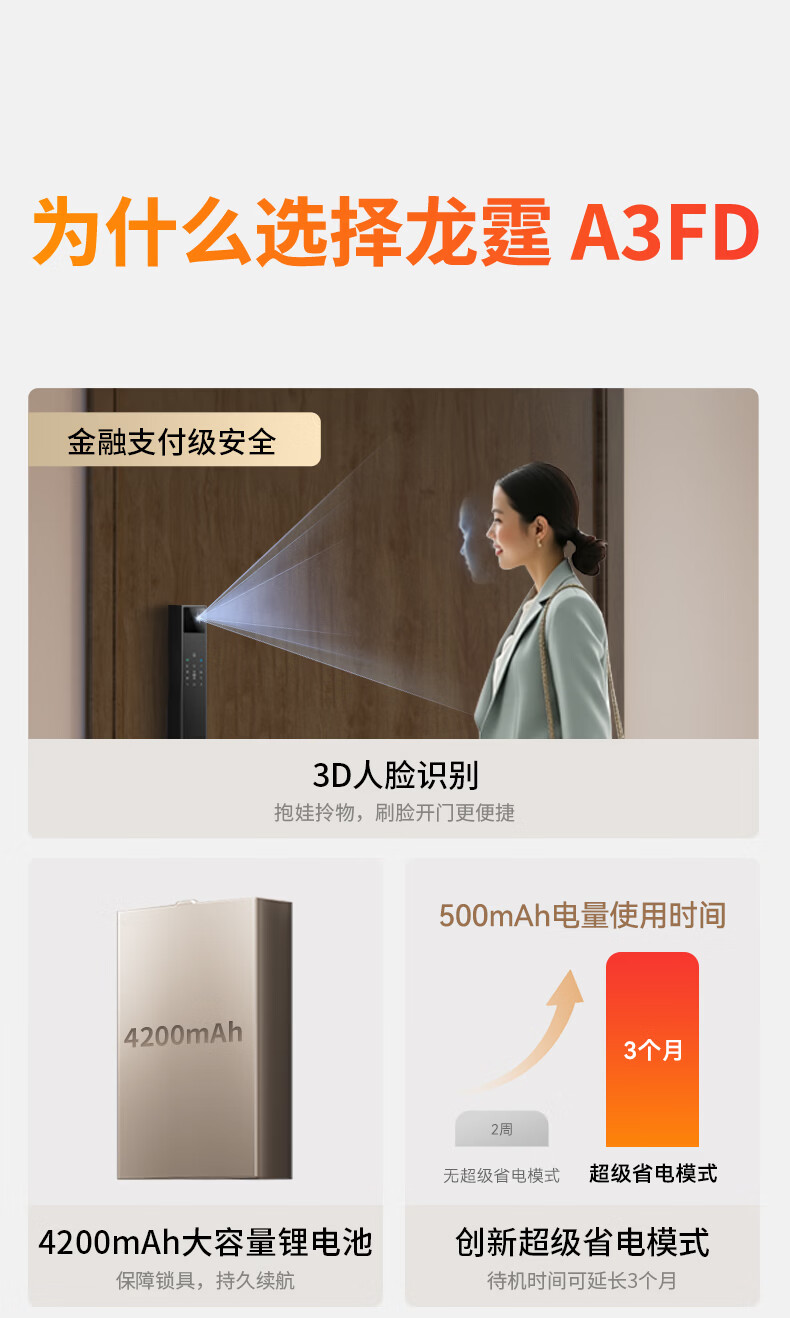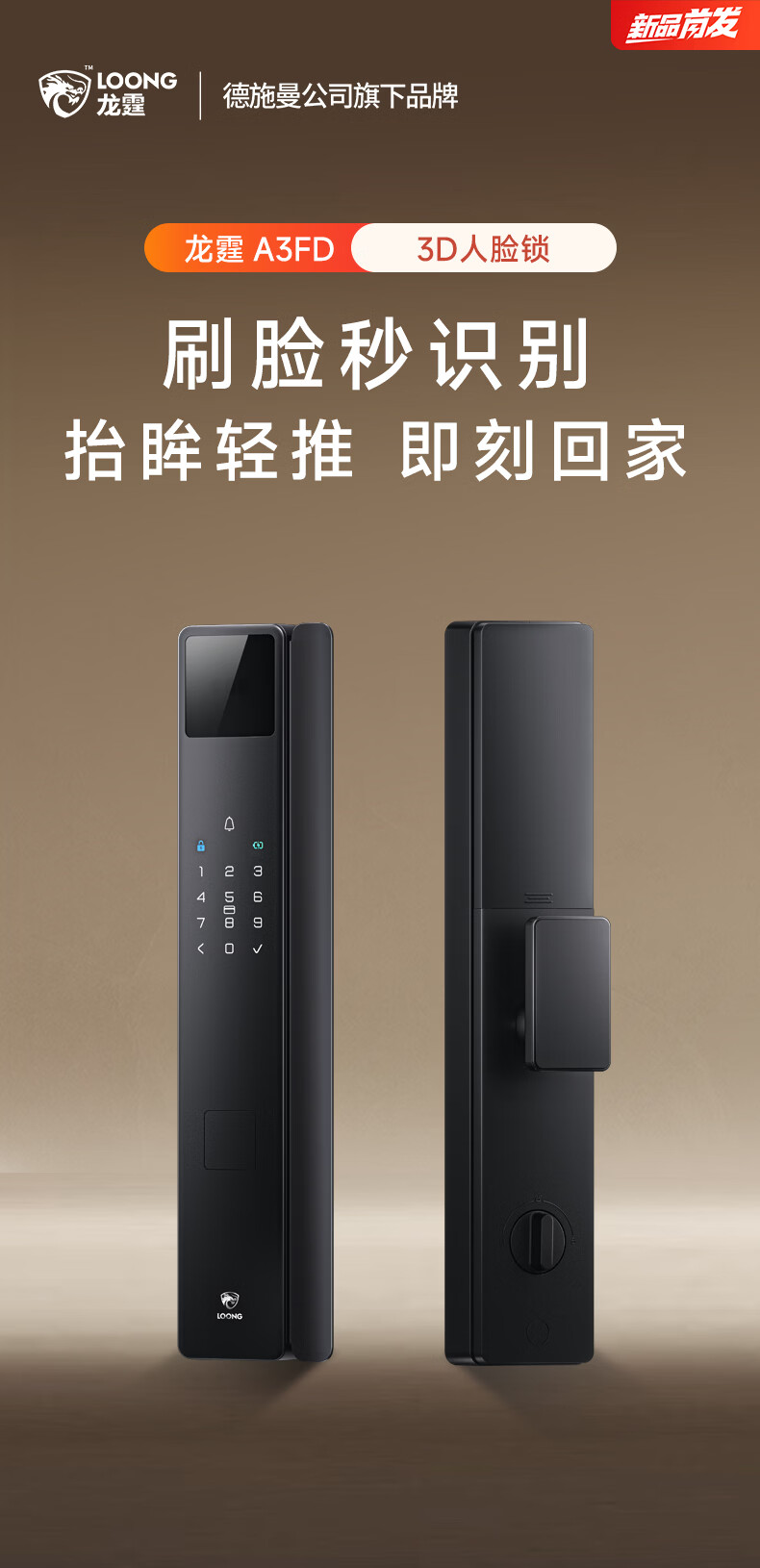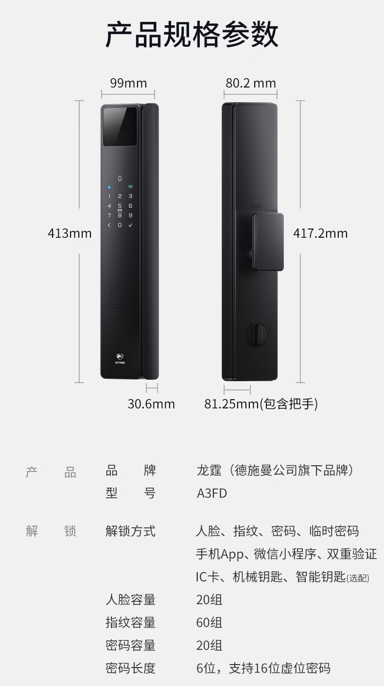 龙霆智能门锁人脸识别电子锁全自动指纹锁密码锁防盗门锁A3FD