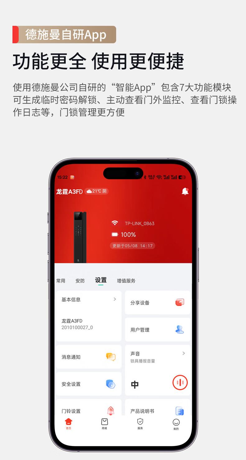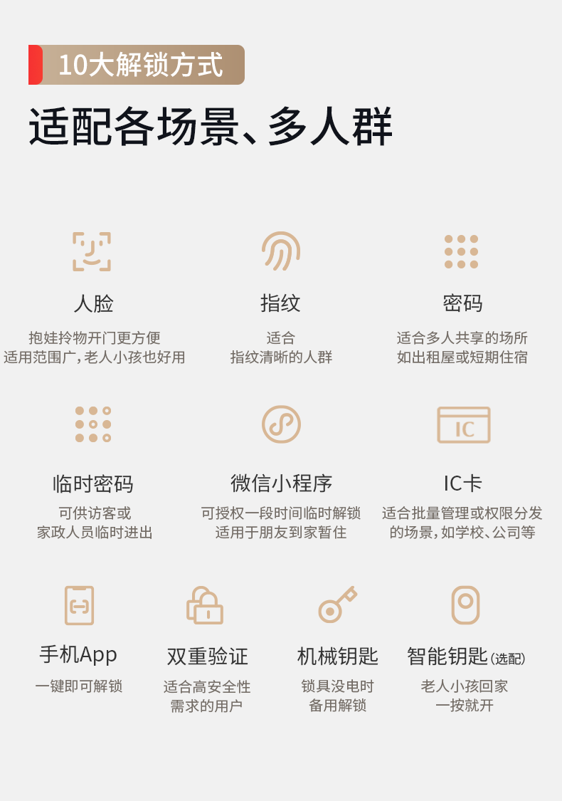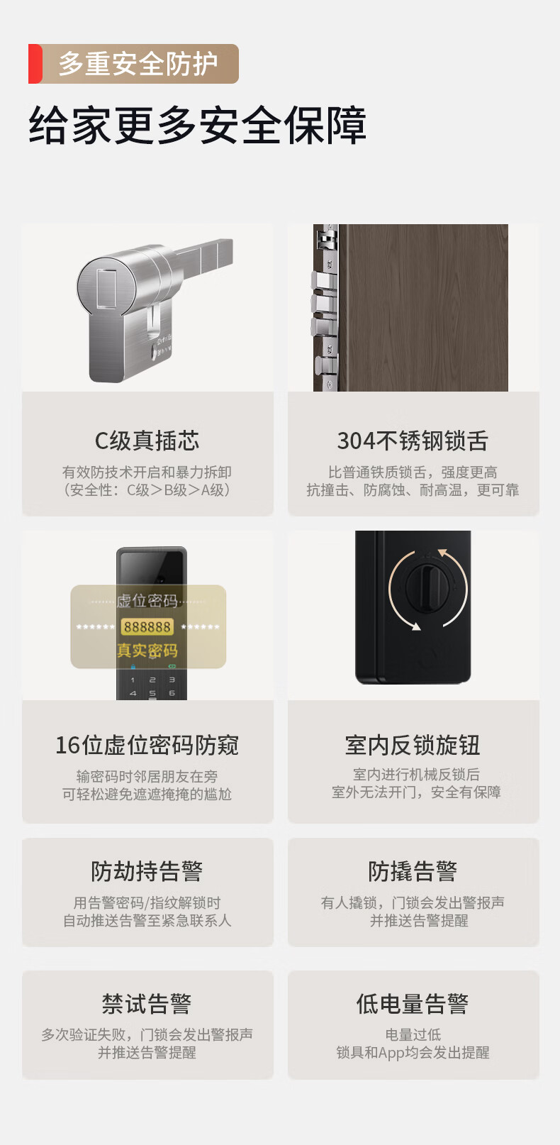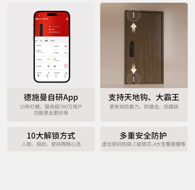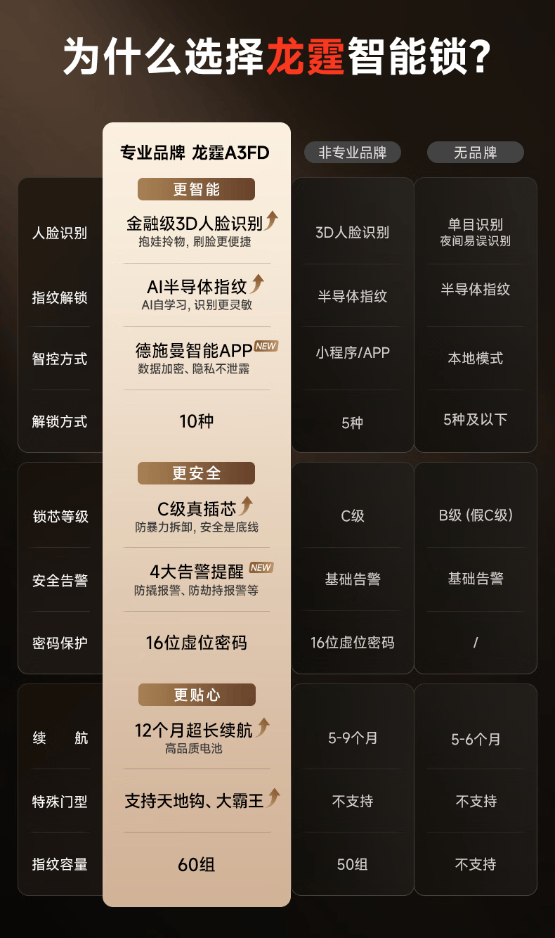 龙霆智能门锁人脸识别电子锁全自动指纹锁密码锁防盗门锁A3FD