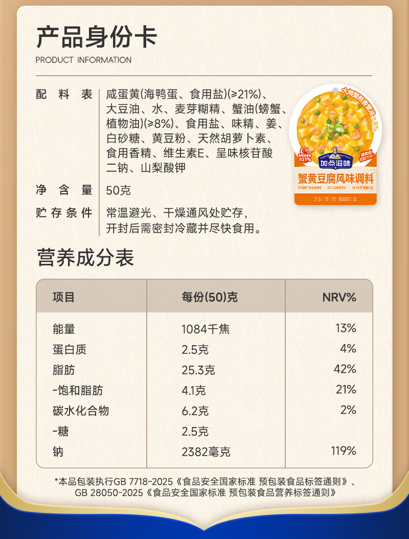 加点滋味蟹黄豆腐风味调料50g【蟹油≥8%】炒菜咸蛋黄蟹黄炒饭炒菜料家用