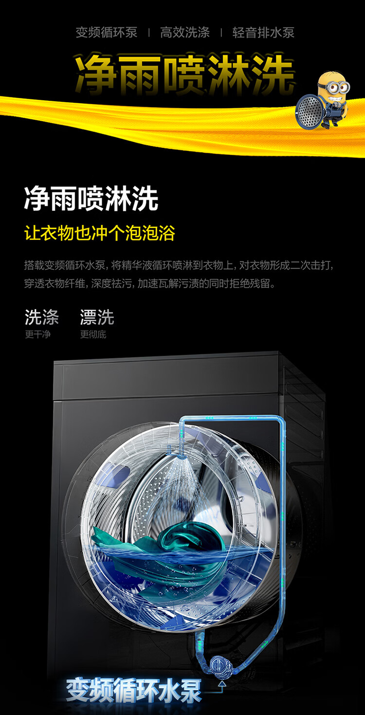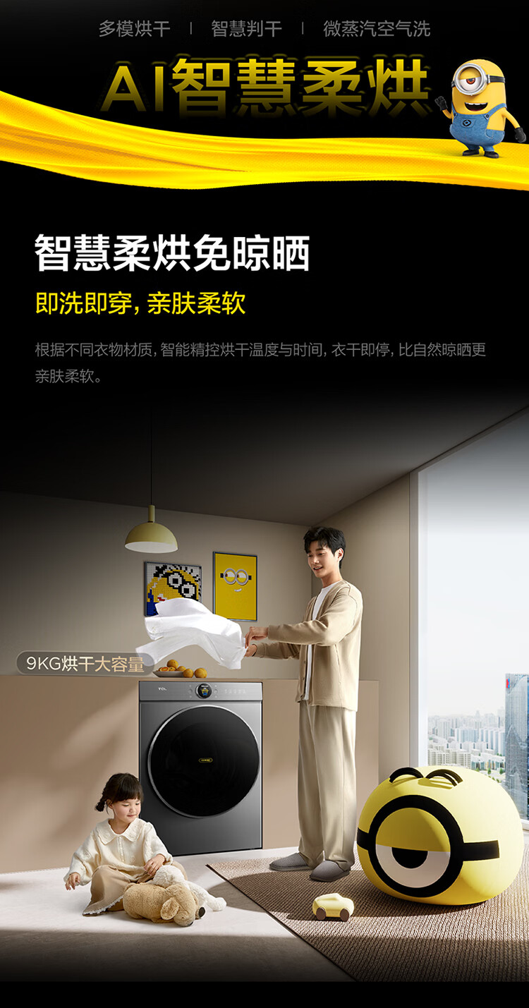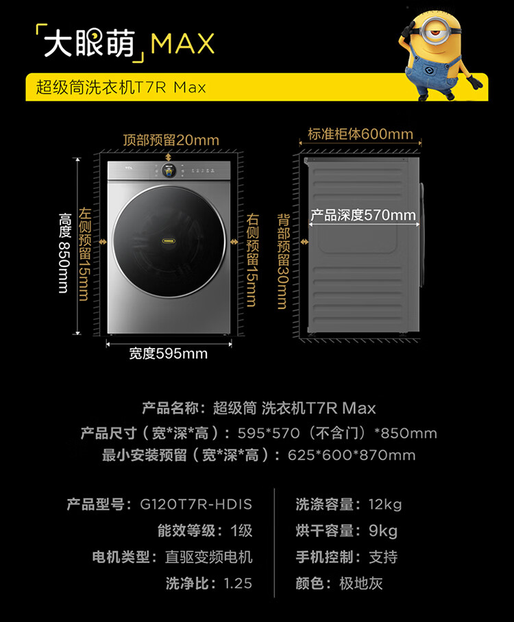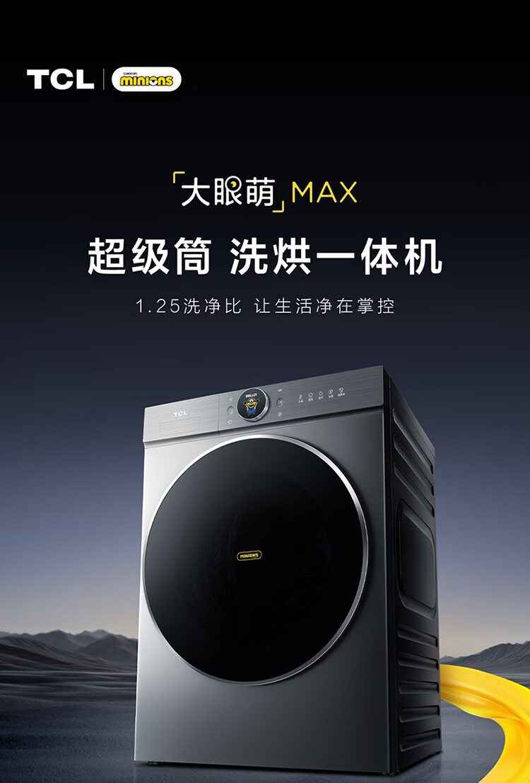 TCL大眼萌超级筒T7R MAX小黄人滚筒洗衣机全自动洗烘一体12KG家电国家补贴以旧换新G120T7R-HDIS