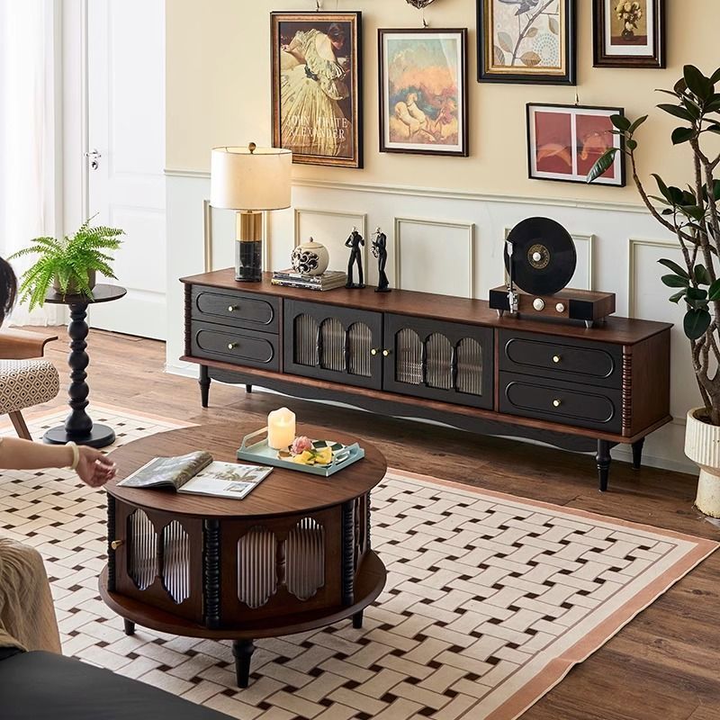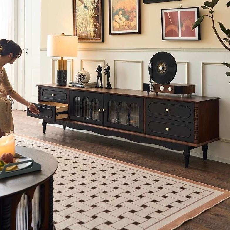 法式复古实木电视柜带抽屉小户型客厅家用落地柜法式餐边柜储物柜