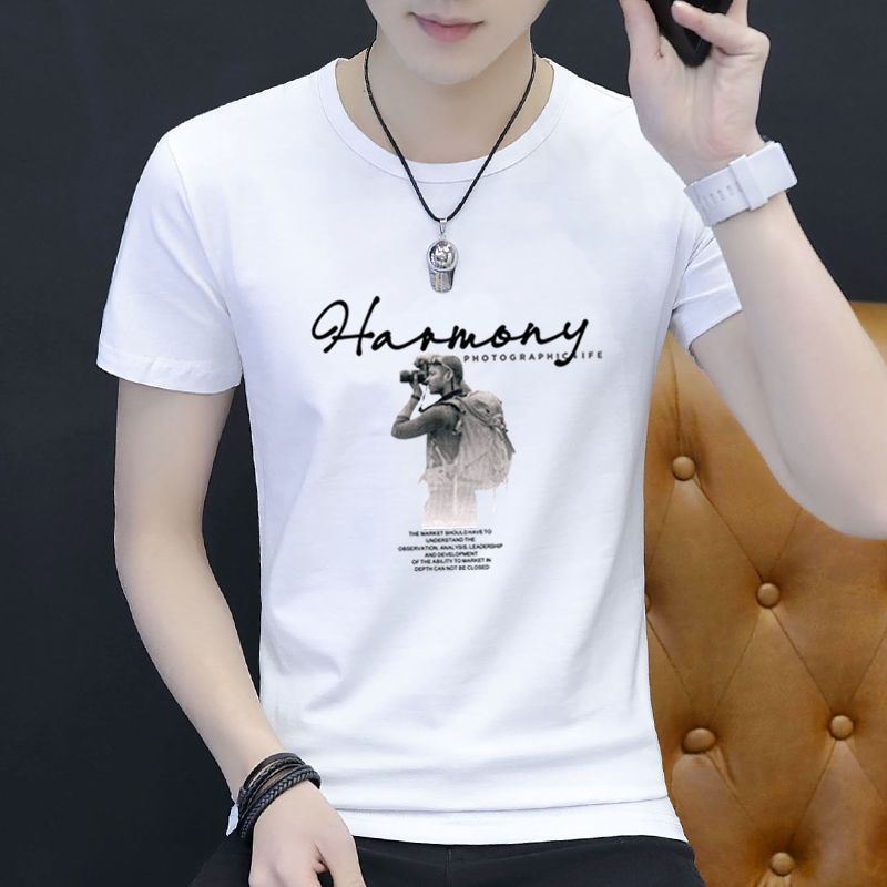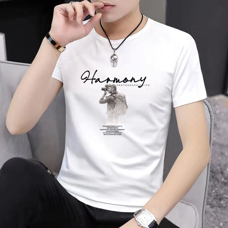 【奥戴尔棉】夏季男士圆领短袖印花t恤衫潮流简约百搭半袖上衣服
