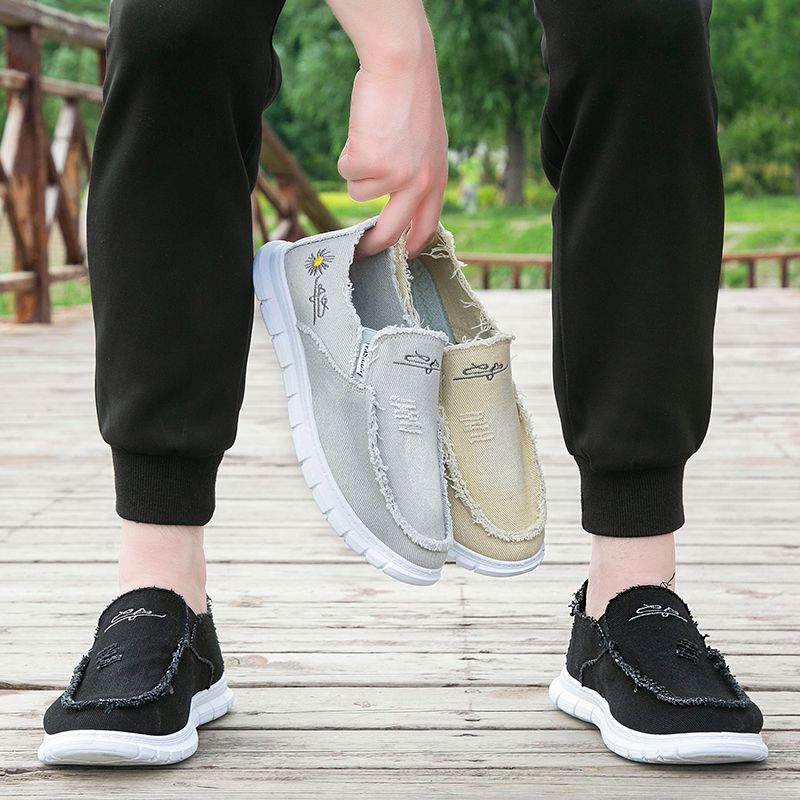 爆款帆布鞋男老北京布鞋春秋季一脚蹬透气休闲鞋防臭耐脏乞丐鞋
