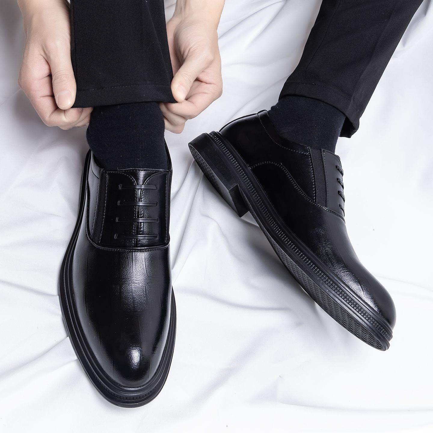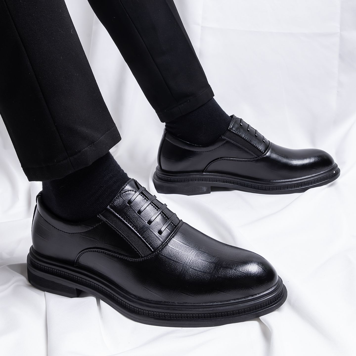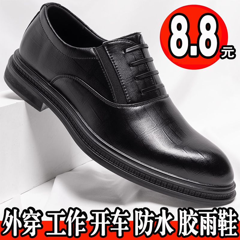 新款透气仿真牛皮鞋男士新郎结婚正装外穿上班休闲防水厨师胶鞋男