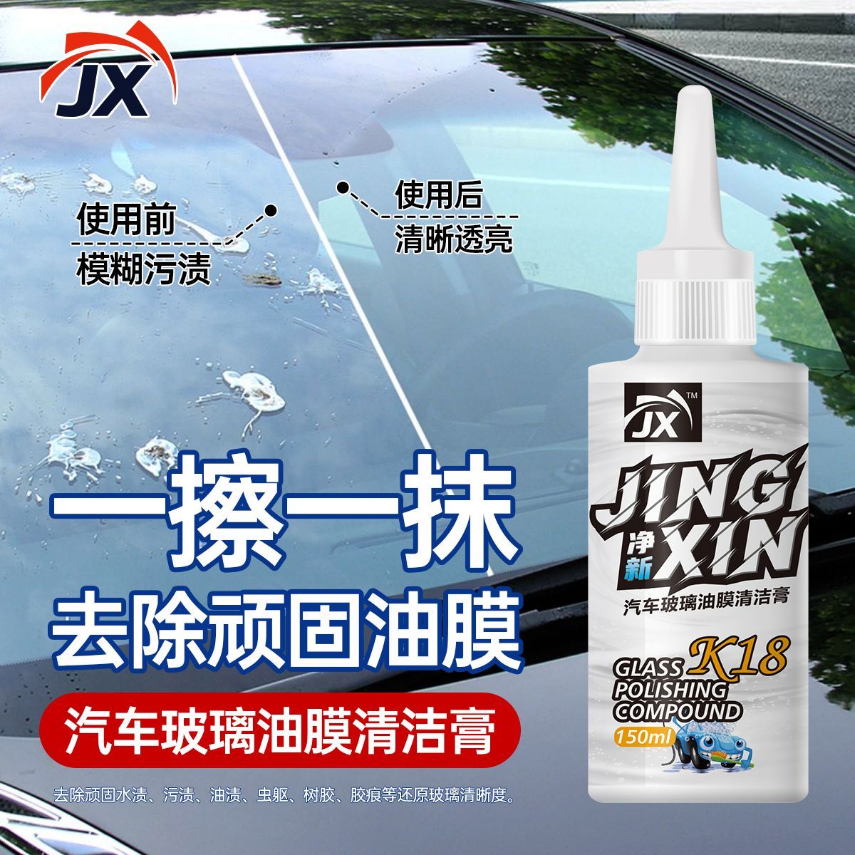 【升级款】K18油膜去除液镀膜玻璃去油水渍修复微划痕玻璃抛光剂
