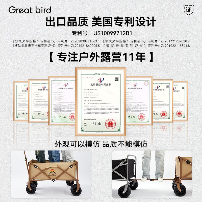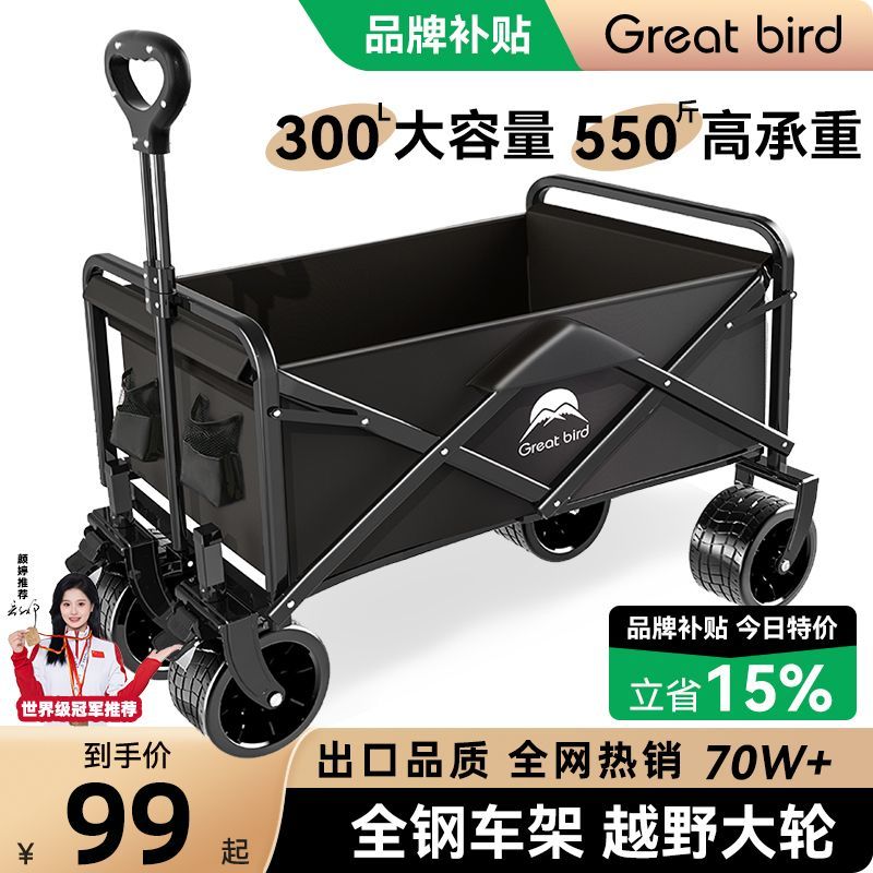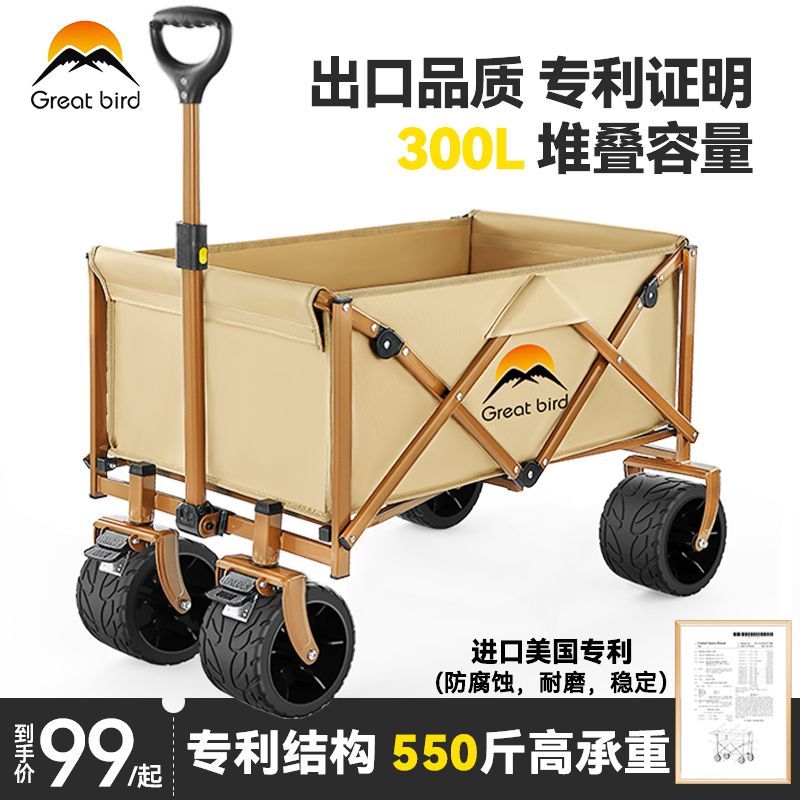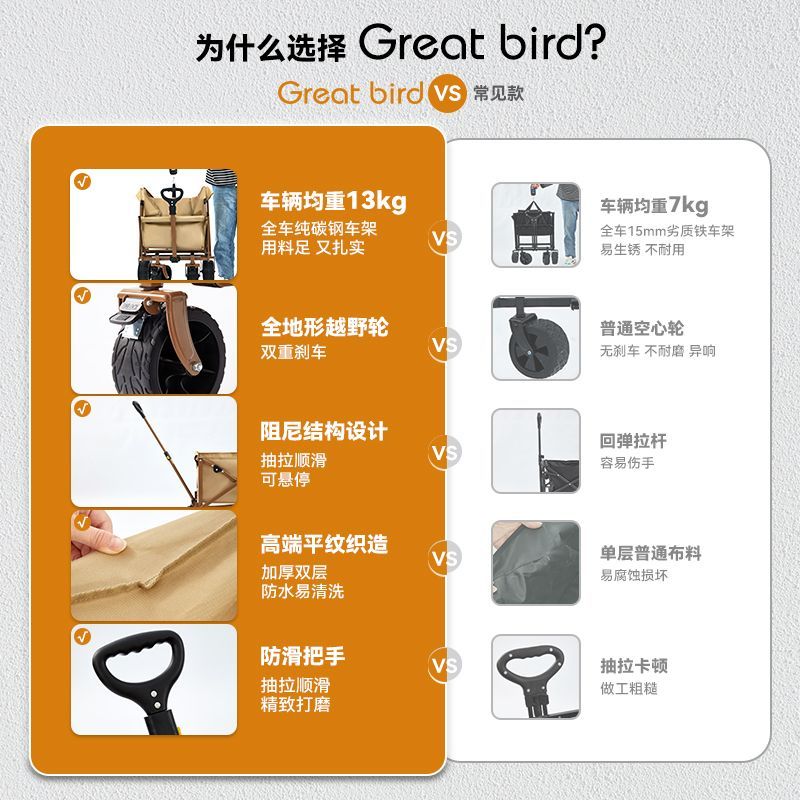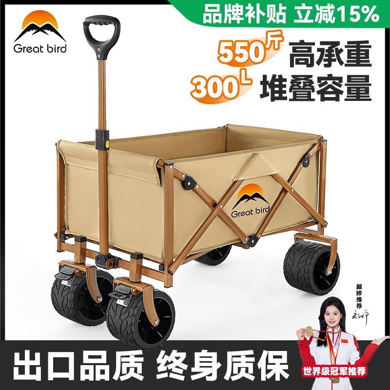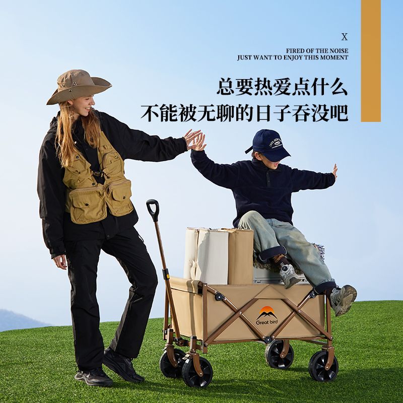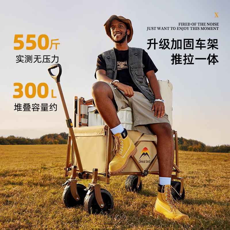 出色鸟露营车多功能小推车可折叠手推购物车野餐户外营地儿童拖车