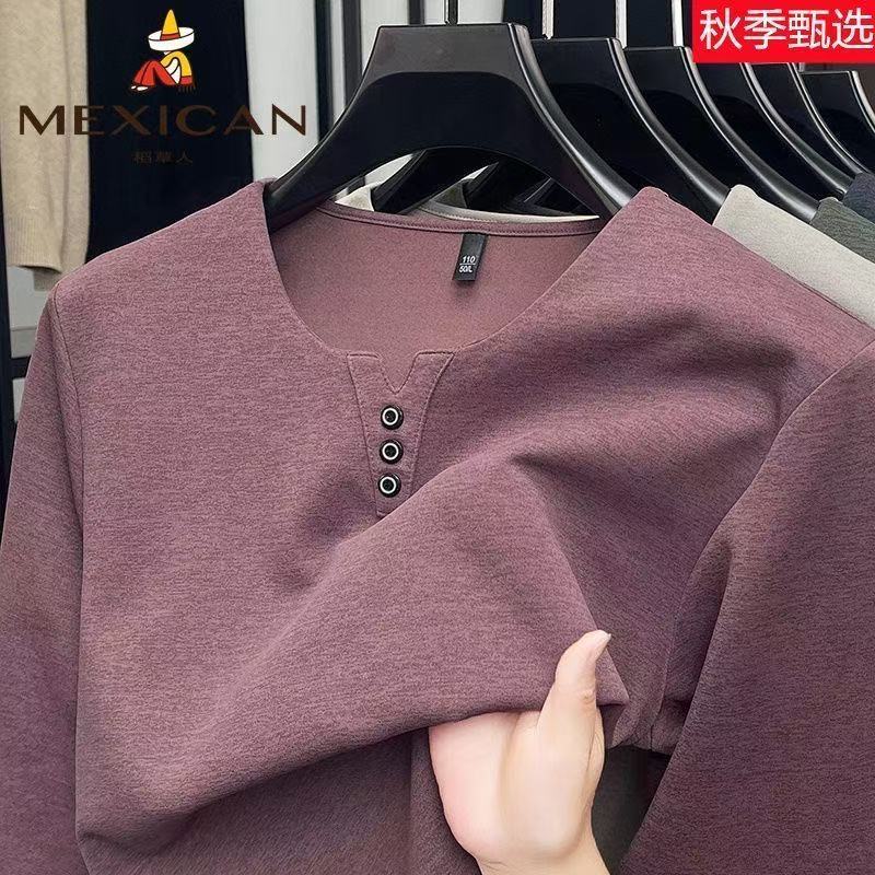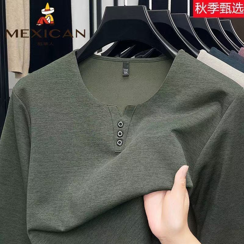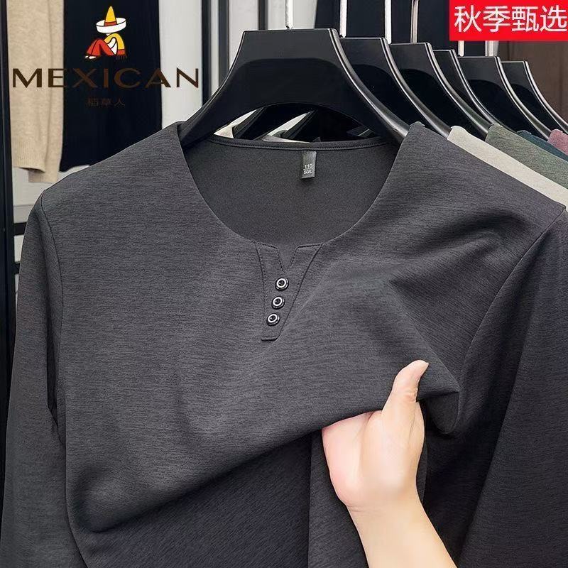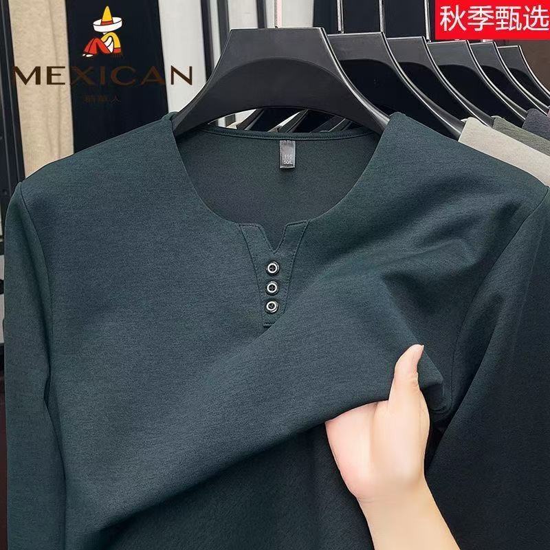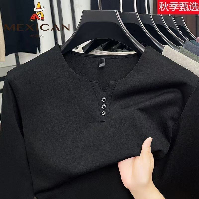 稻草人春秋季男士V领纯色潮流休闲T恤上衣男装打底体恤宽松长袖潮