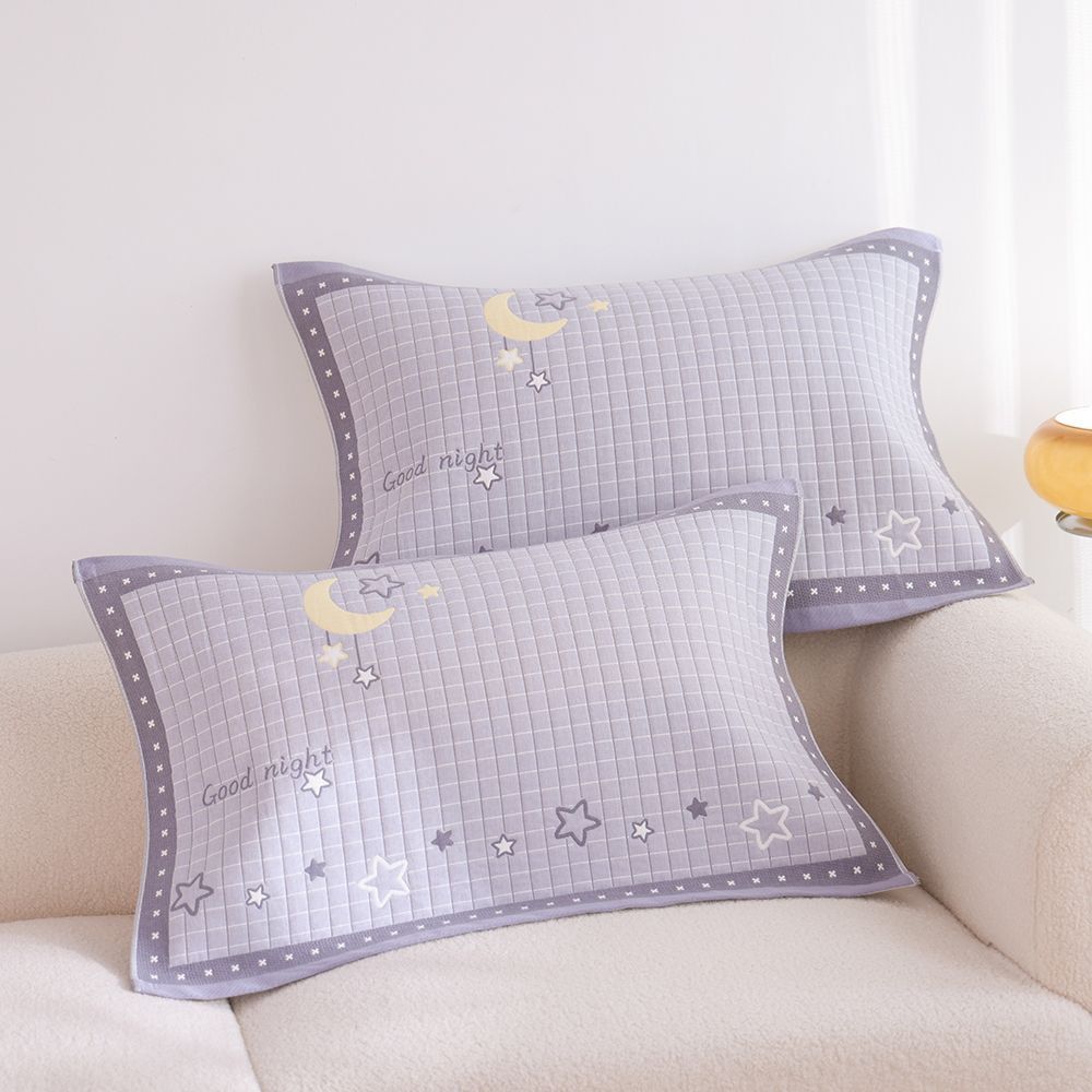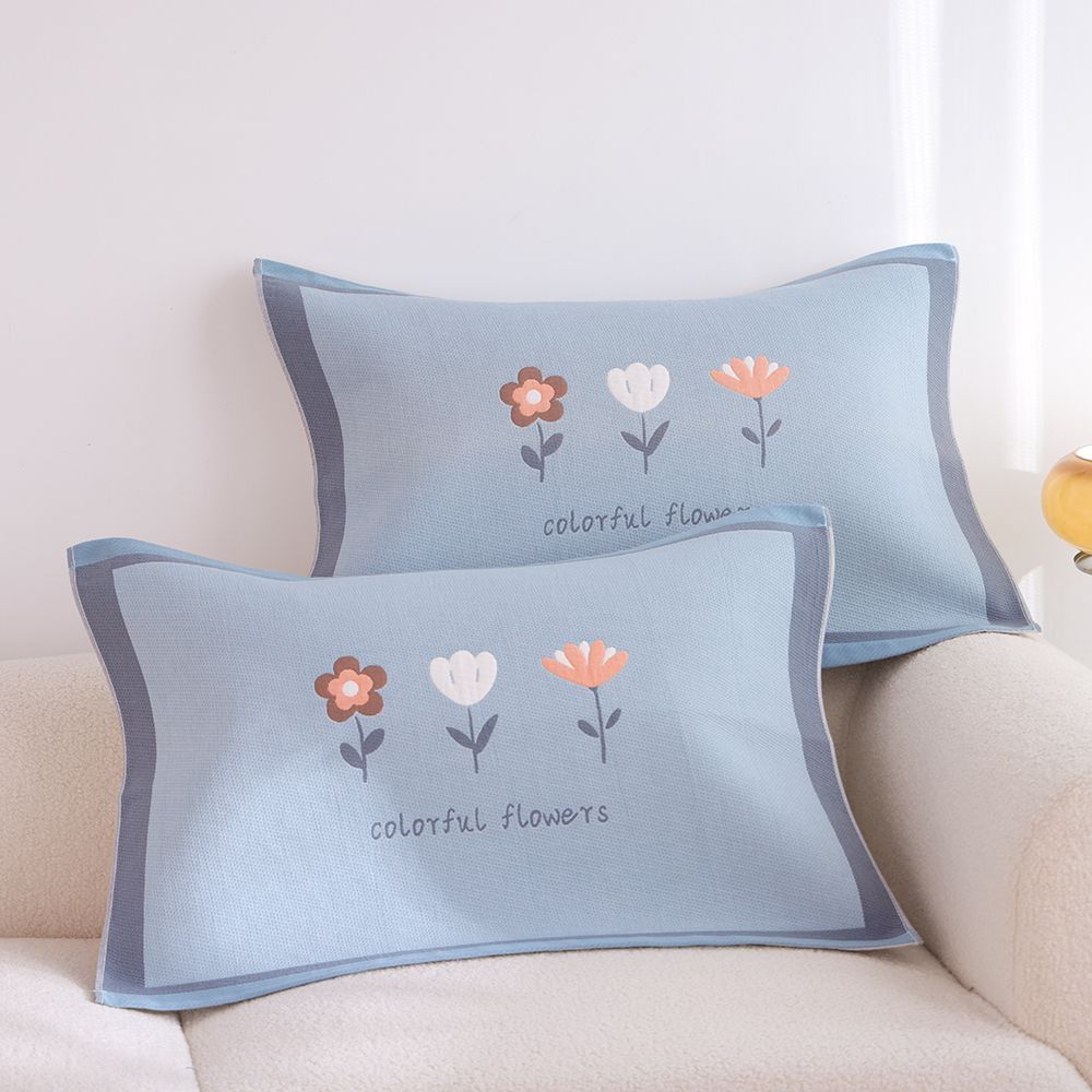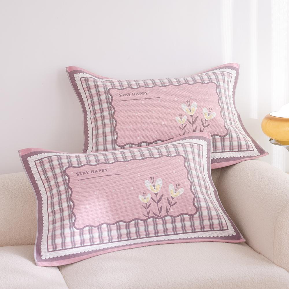 高密纯棉纱布枕巾一对装四季新款卡通防滑透气成人家用全棉枕头巾