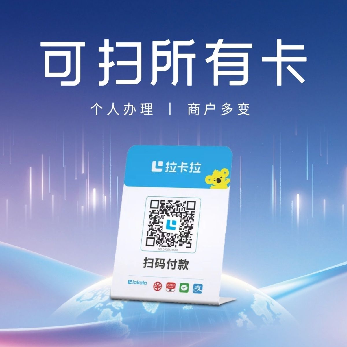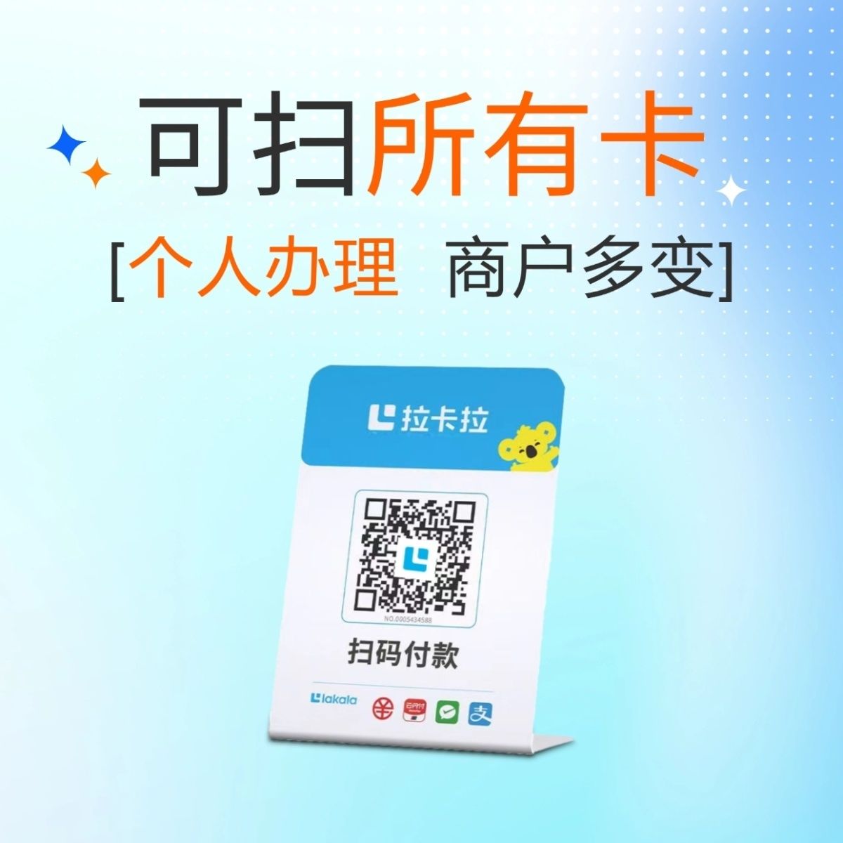 拉卡拉扫码收款移动升级收款牌子扫码支付收款码手持收银吊牌挂牌